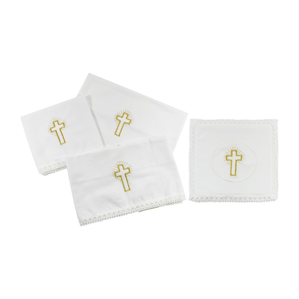 Servizio per la Messa con ricamo croce dorata. Realizzato in cotone 100%.