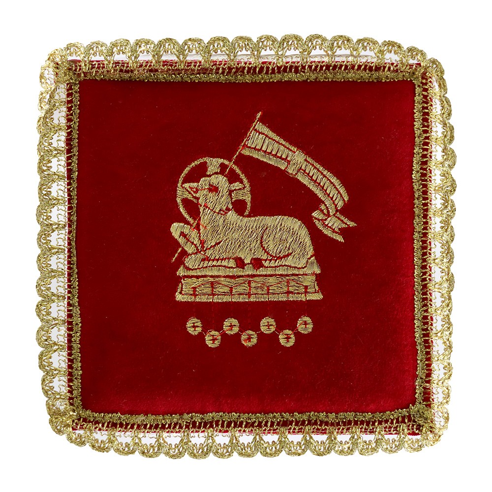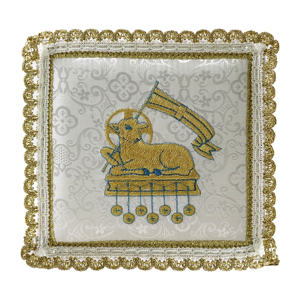 Palla per calice in raso con ricamo Agnello della Pace.