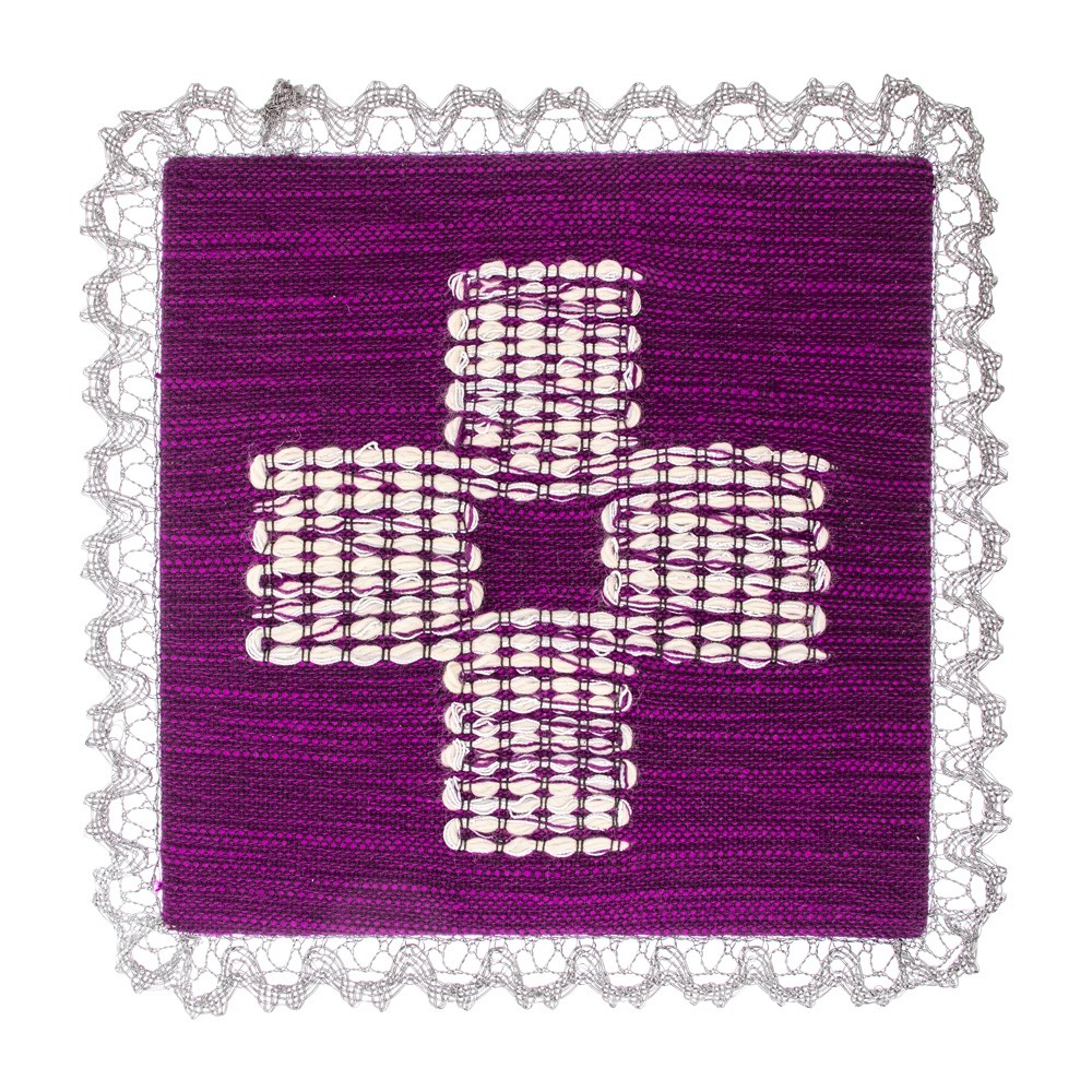 Palla per copricalice liturgico in pura seta con croce ricamata.