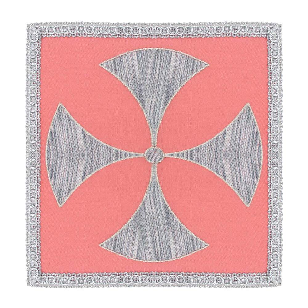 Copricalice palla in raso con croce ricamata.