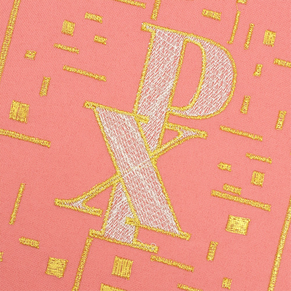 Il fine e ricco ricamo è eseguito accuratamente a macchina con filati dorati e argentati.