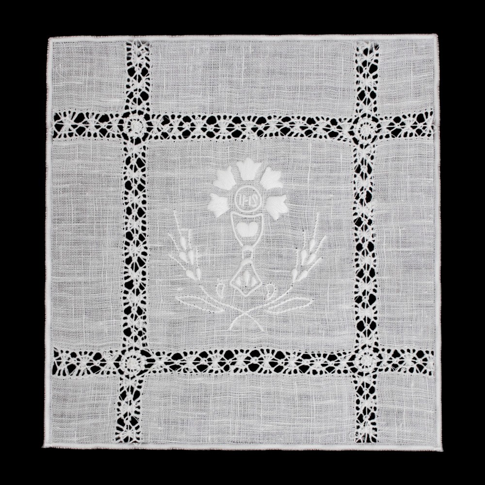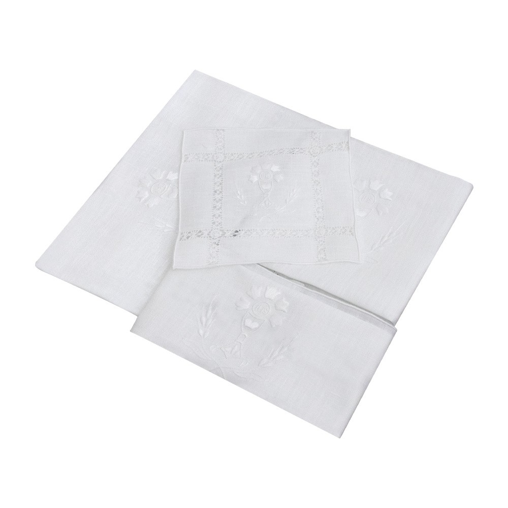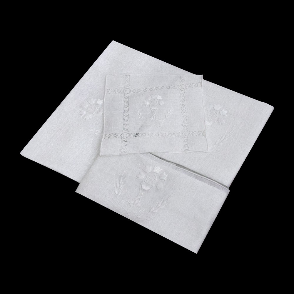 Si compone di 4 pezzi (corporale, purificatoio, manutergio e palla copricalice).