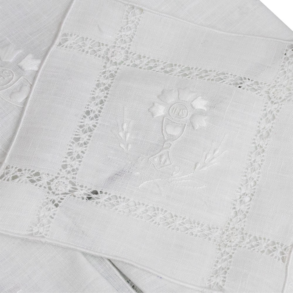 Elegante servizio da altare ricamato a mano e confezionato in puro lino.