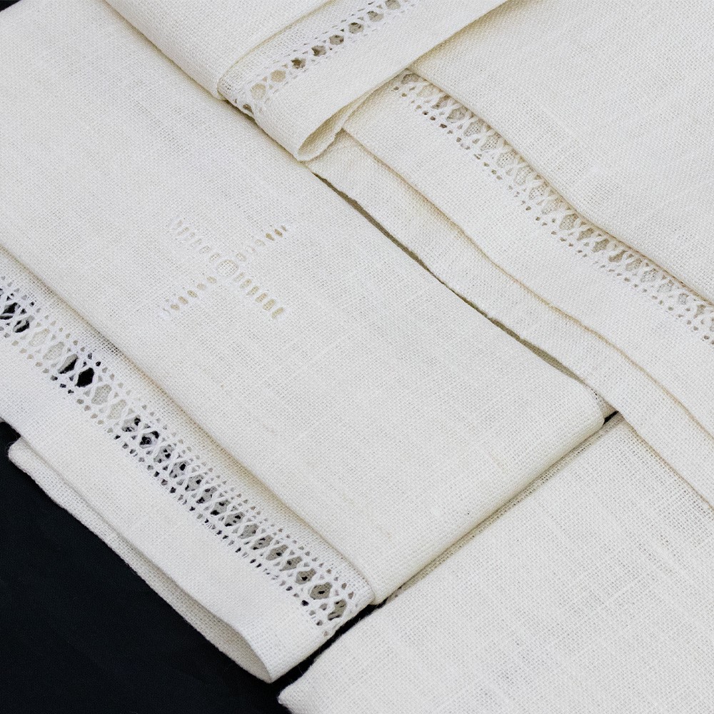Set messa in puro lino, ricamato a mano.
