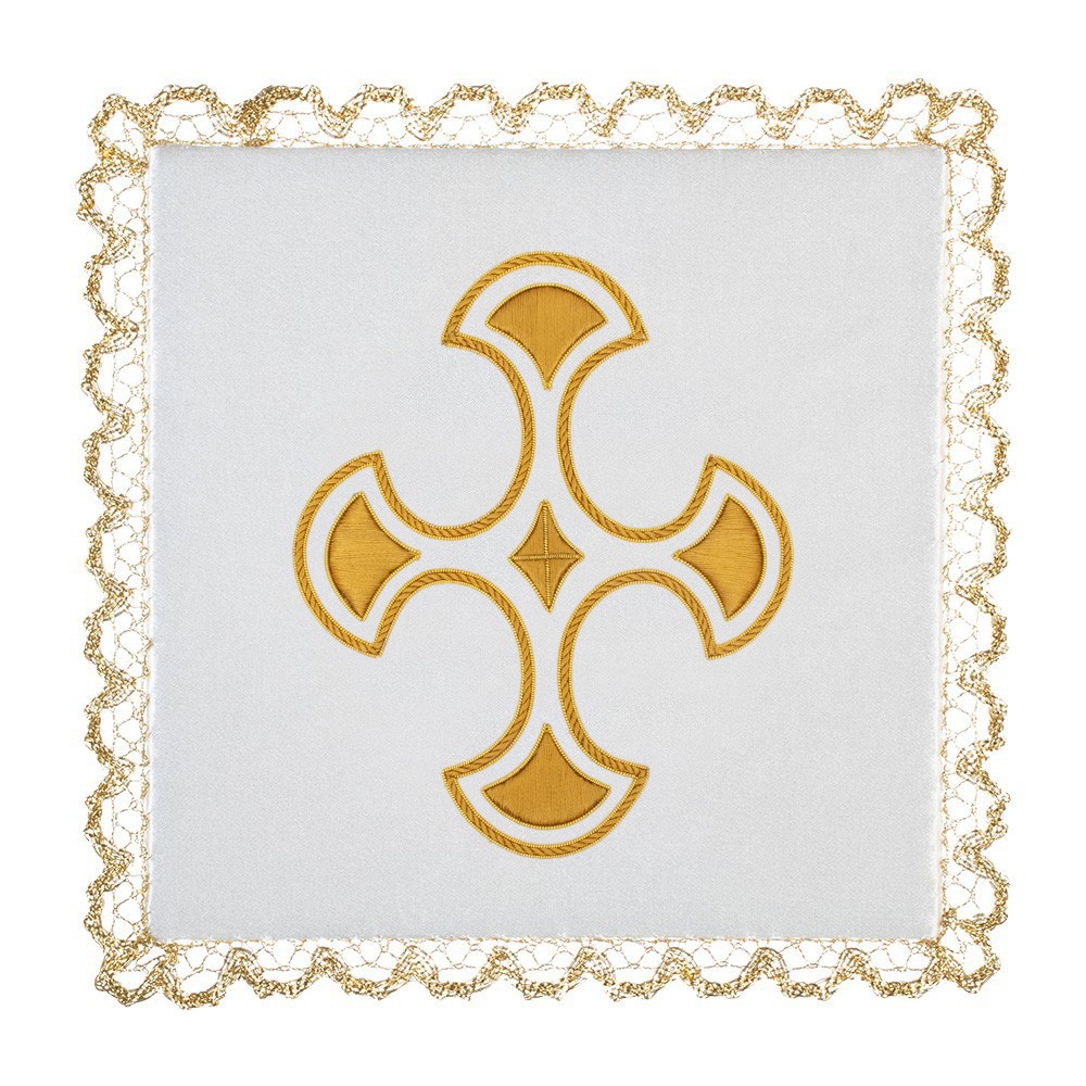 Palla per copricalice liturgico in pura seta con croce ricamata.