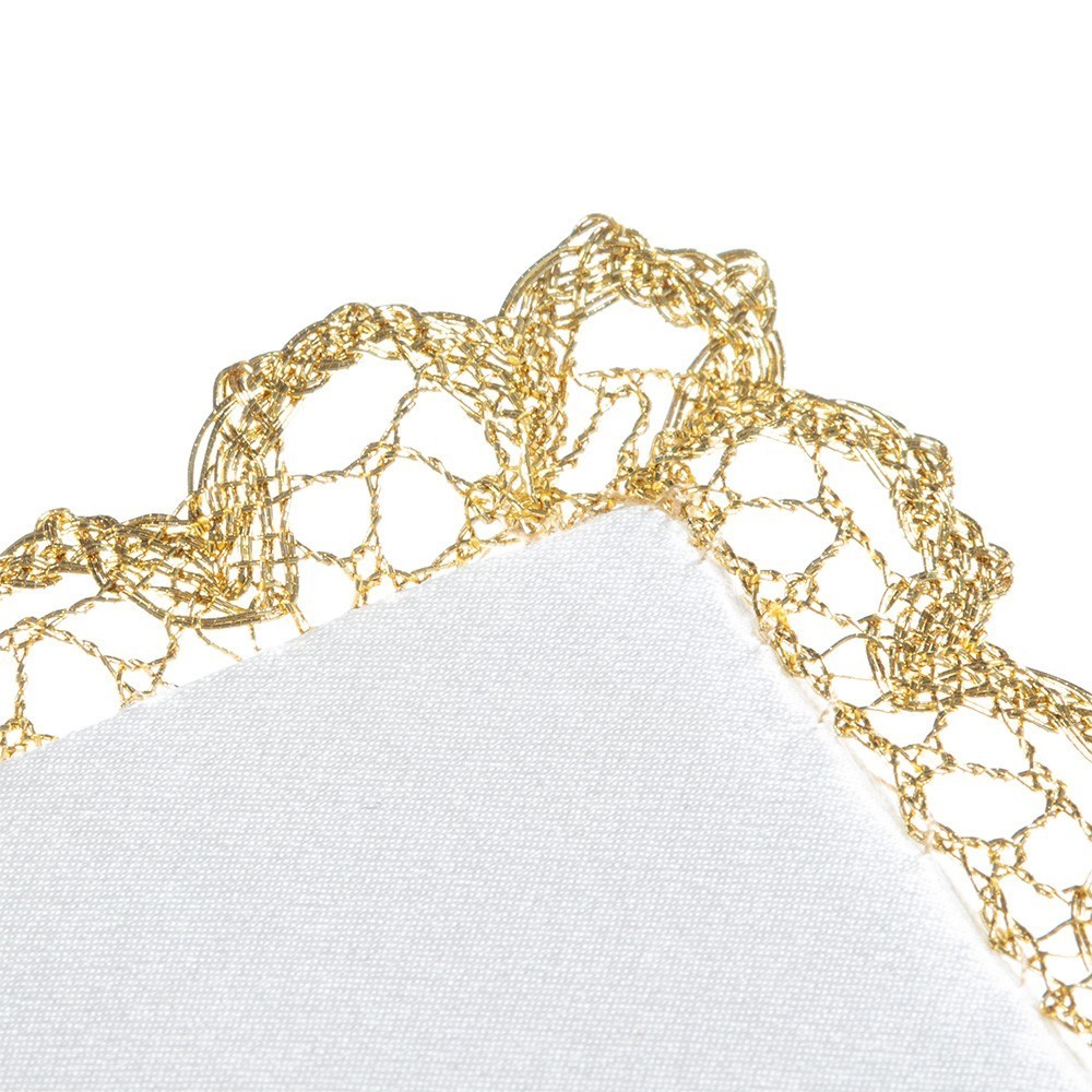 Il grazioso ricamo rappresenta una croce con pietra centrale contornata da cerchi, eseguito finemente a MANO seguendo le antiche tecniche di lavorazione artigianale. Il prodotto è rifinito con un bordo in pizzo dorato, che ne esalta l’eleganza.