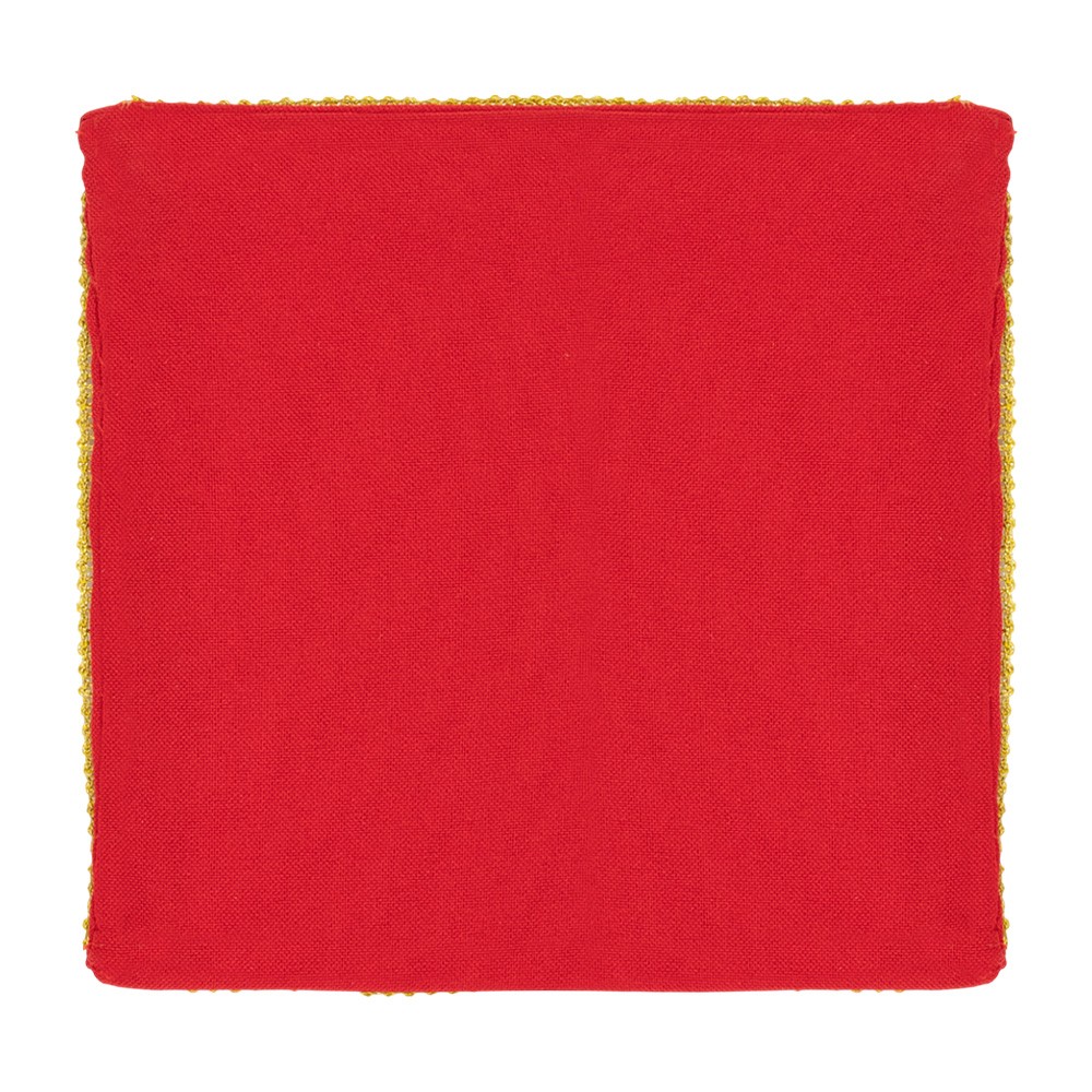 Palla per calice in floccato rosso con ricamo Agnello della Pace.