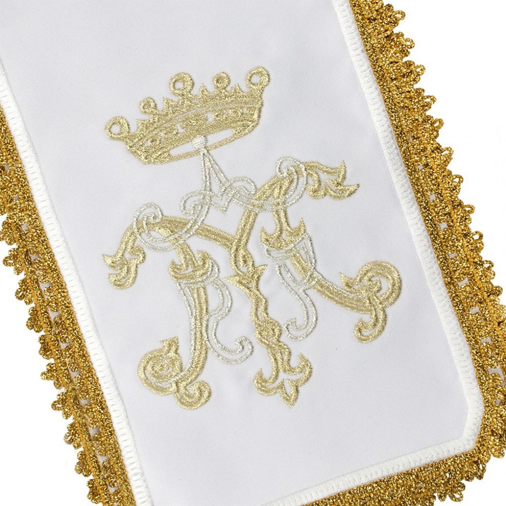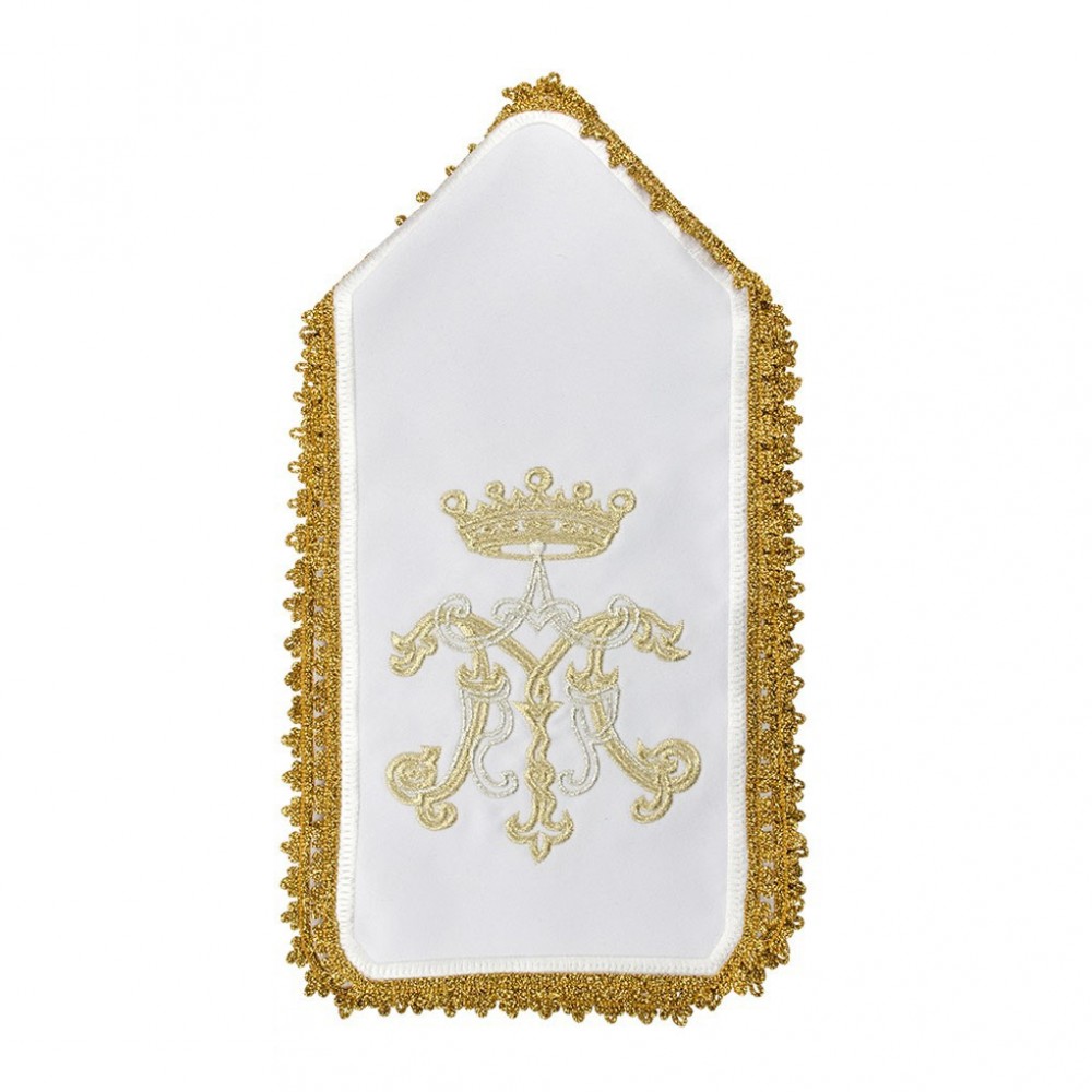 Consegna in 2 settimaneCopricalice con ricamo Mariano in raso.