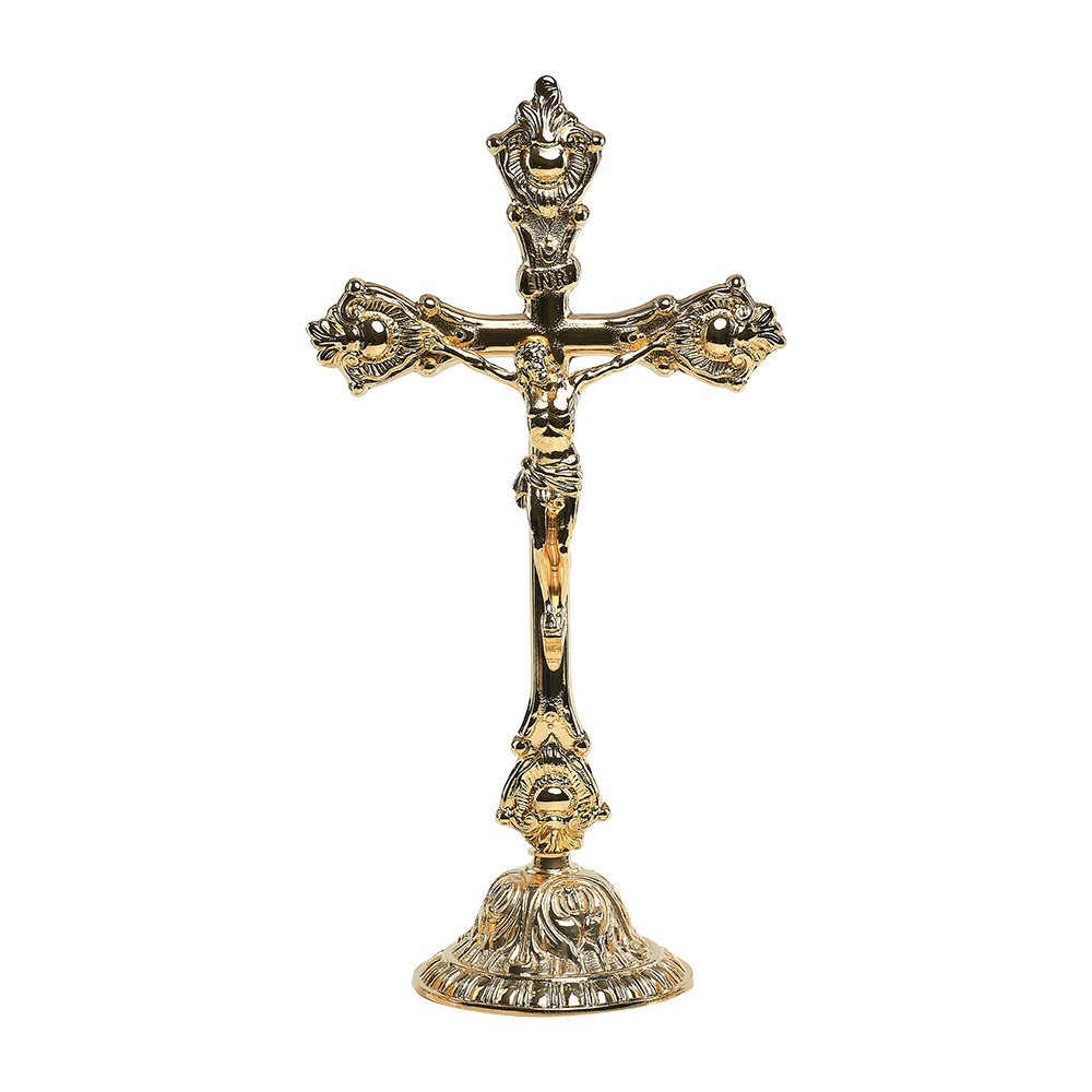 Crocifisso da mensa in ottone dorato 24k, h 30,5 cm.