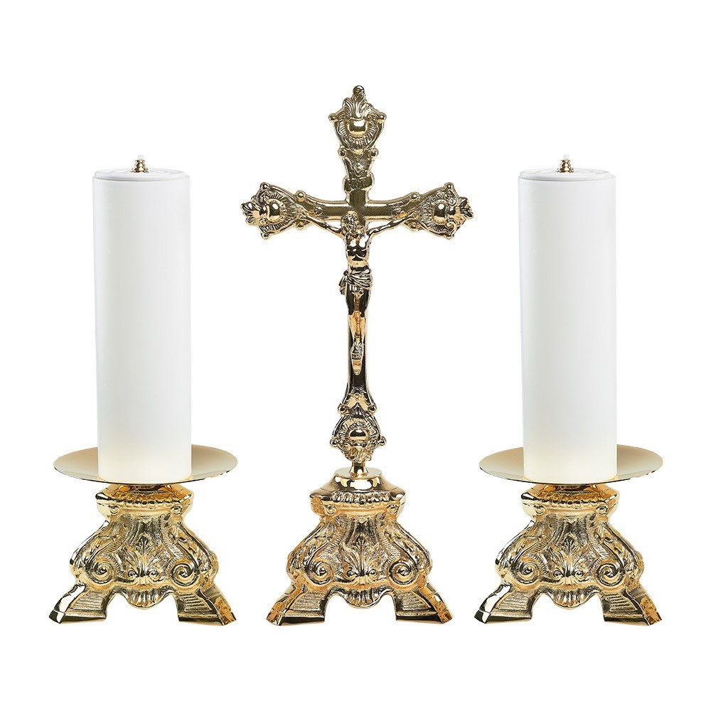 Croce con coppia di candelieri per altare.