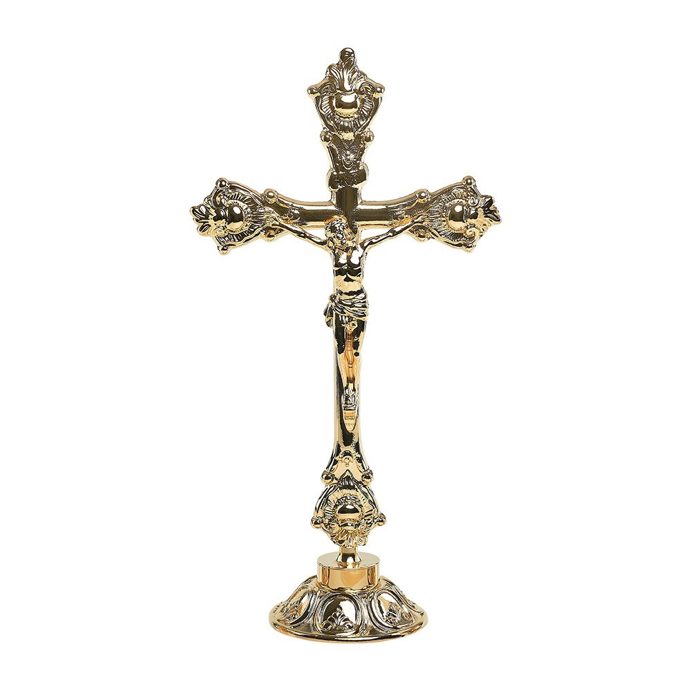 Crocifisso da mensa in ottone dorato 24k, h 30,5 cm.