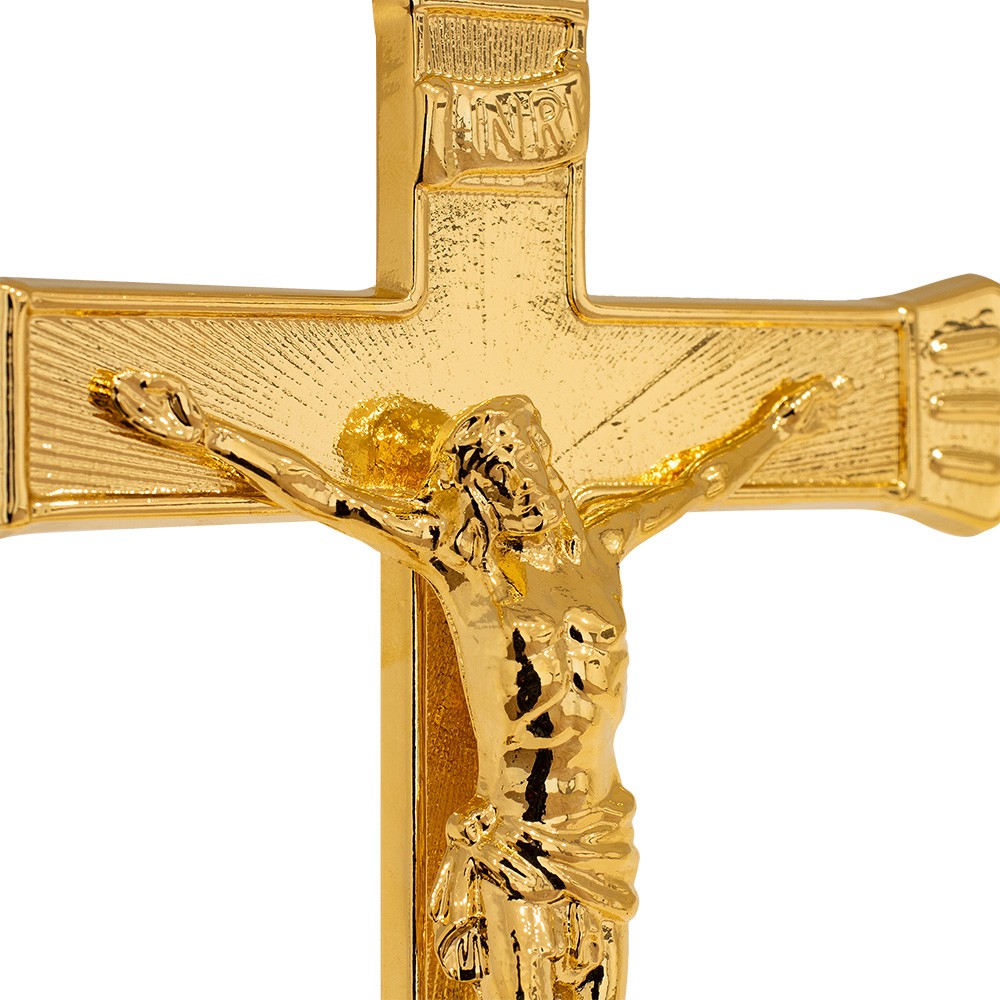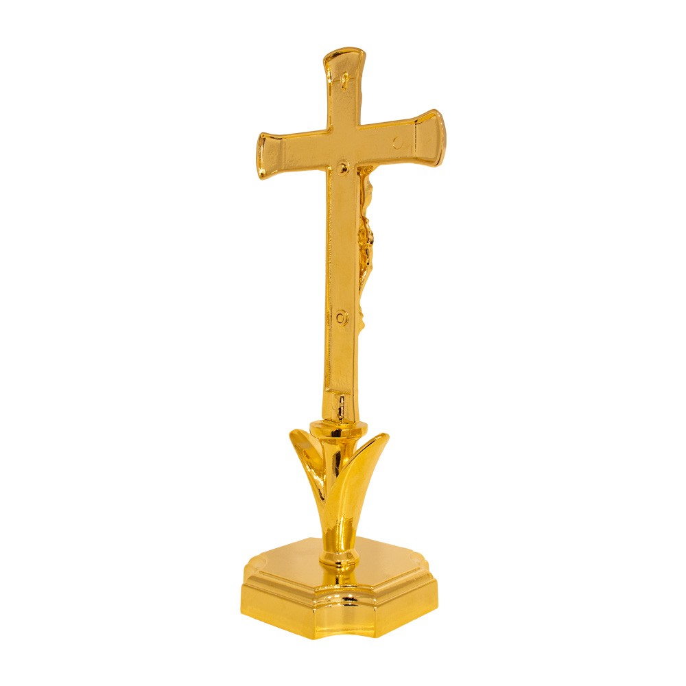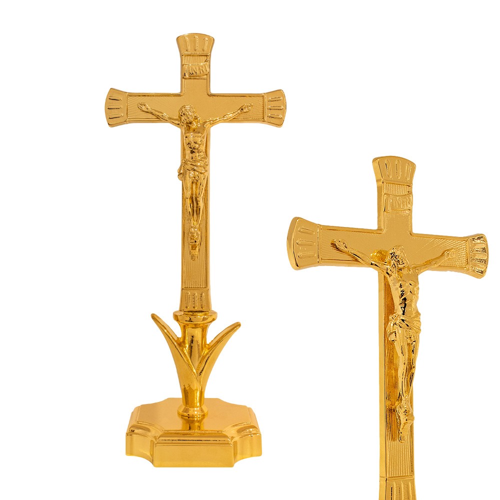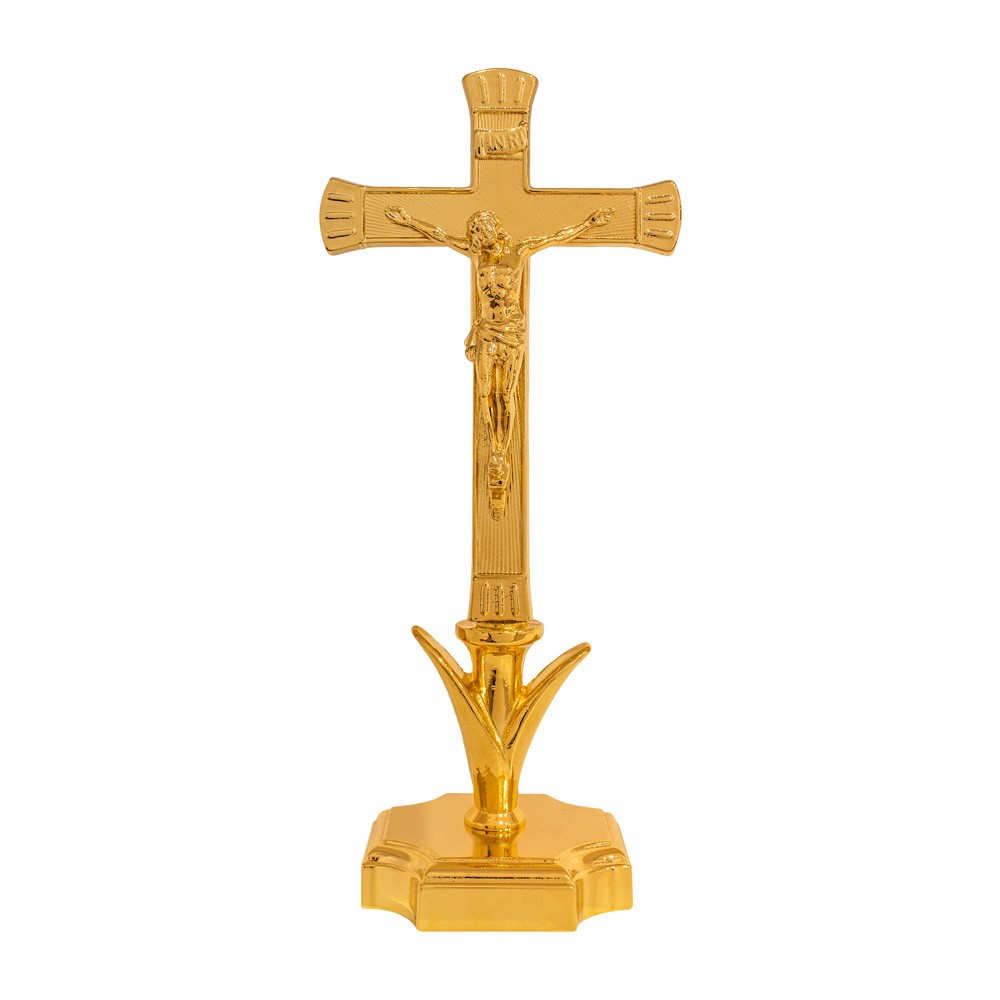 Crocifisso da mensa in ottone dorato 24k, h 30,5 cm.