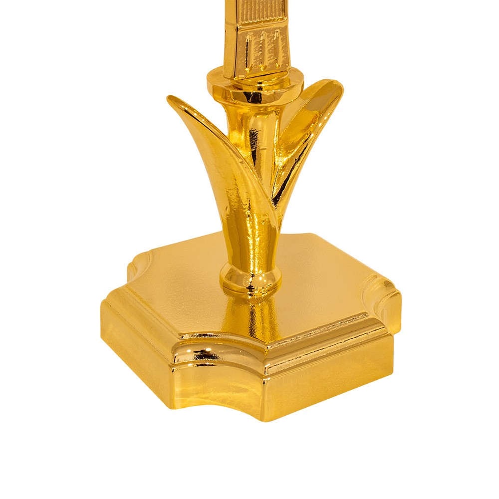 Croce da altare realizzata su candeliere modello "quadro" in ottone dorato. Altezza croce 28 cm. Articolo di ottima qualità, eseguito da un'azienda italiana.