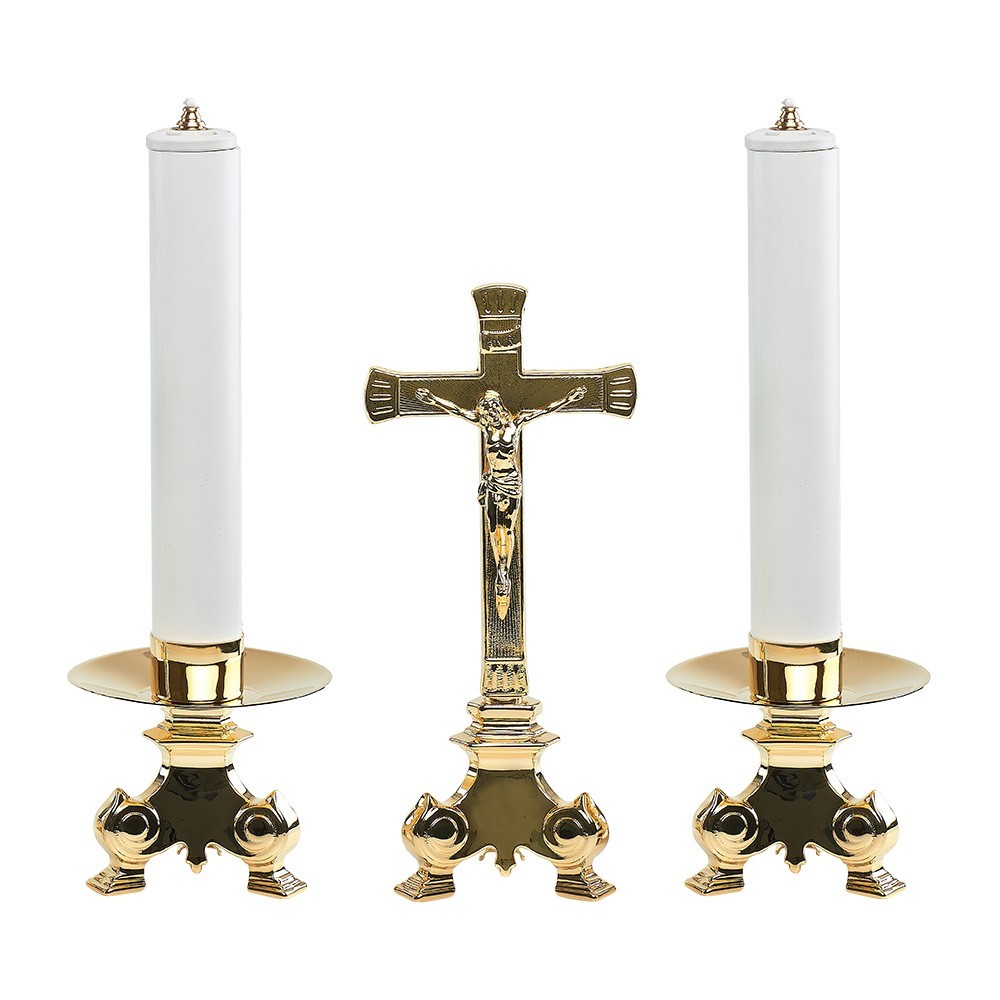 Croce da altare con coppia di candelieri.