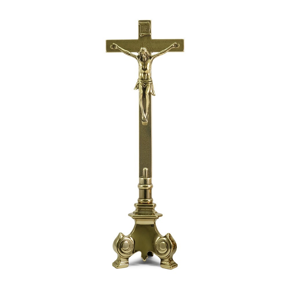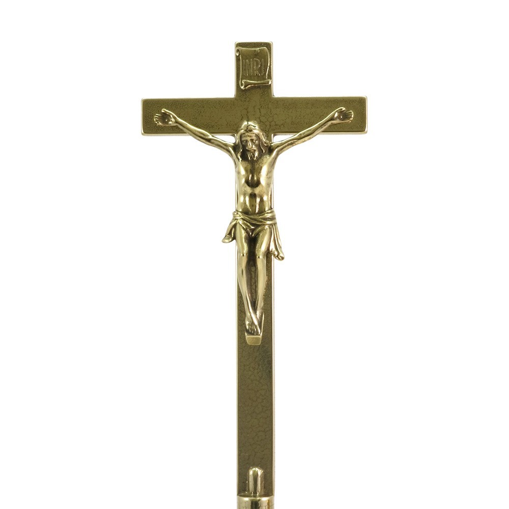 Croce da altare in ottone lucido.