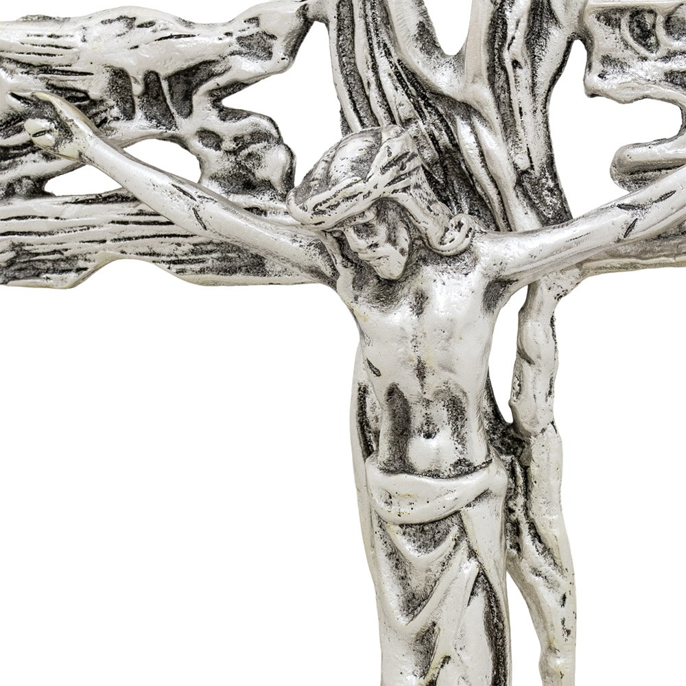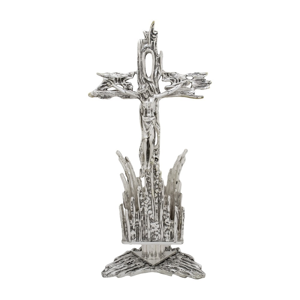 Croce da altare realizzato interamente in fusione massiccia di ottone con finitura argento.