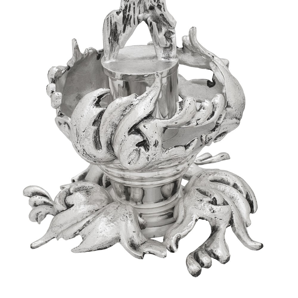 Realizzato interamente in ottone fuso con finitura argento, h 42 cm.