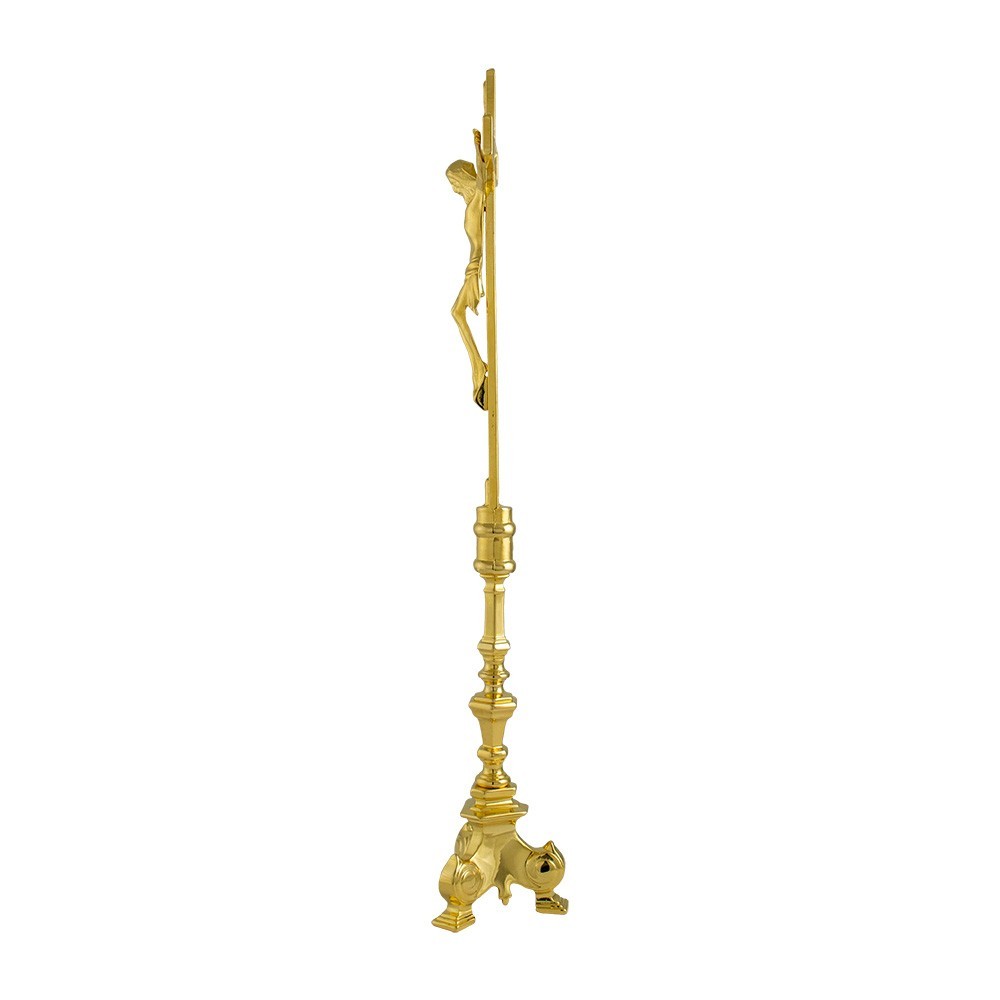Consegna in 2 settimaneCroce su candeliere da altare in ottone dorato.