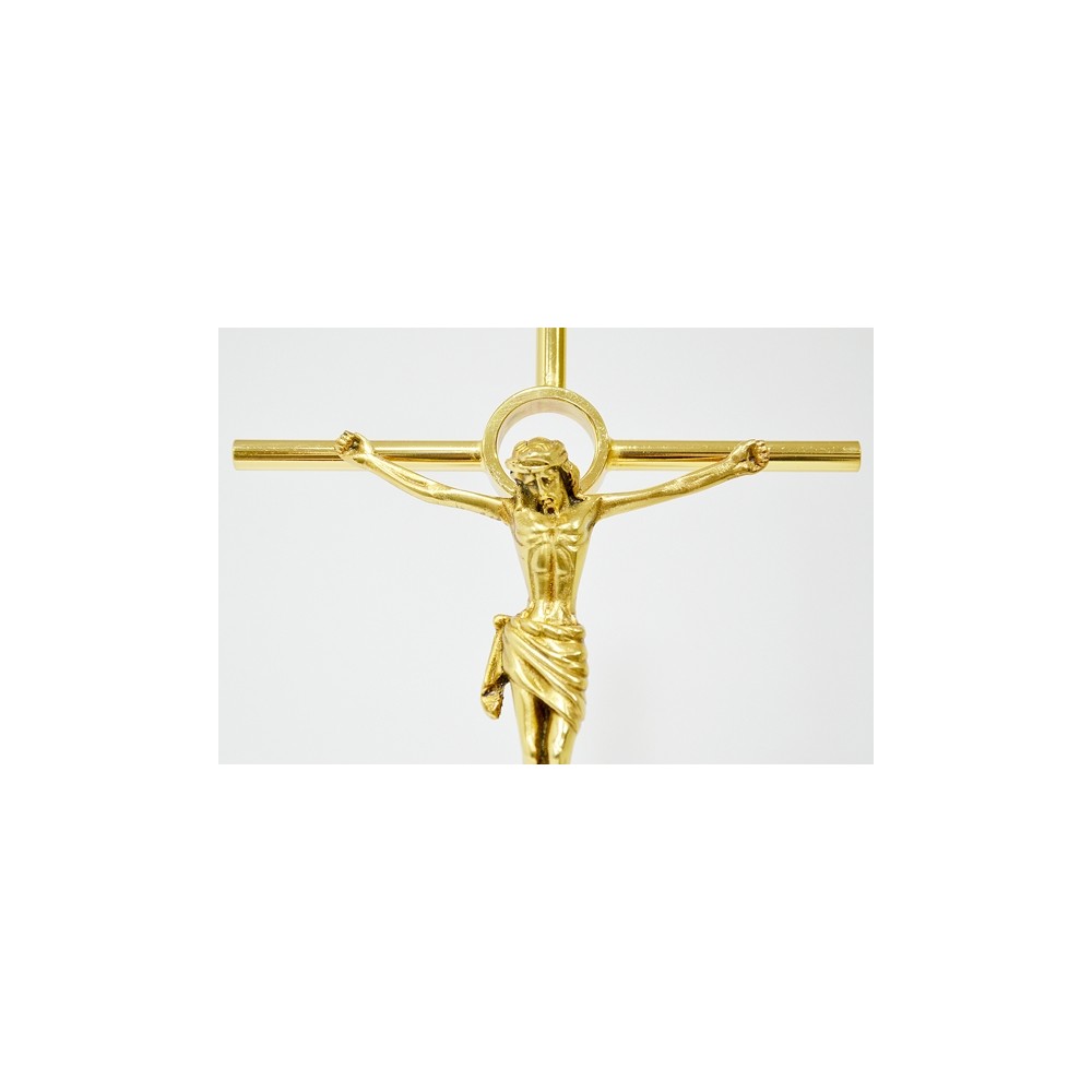 Crocifisso da mensa in ottone dorato, h 30 cm.