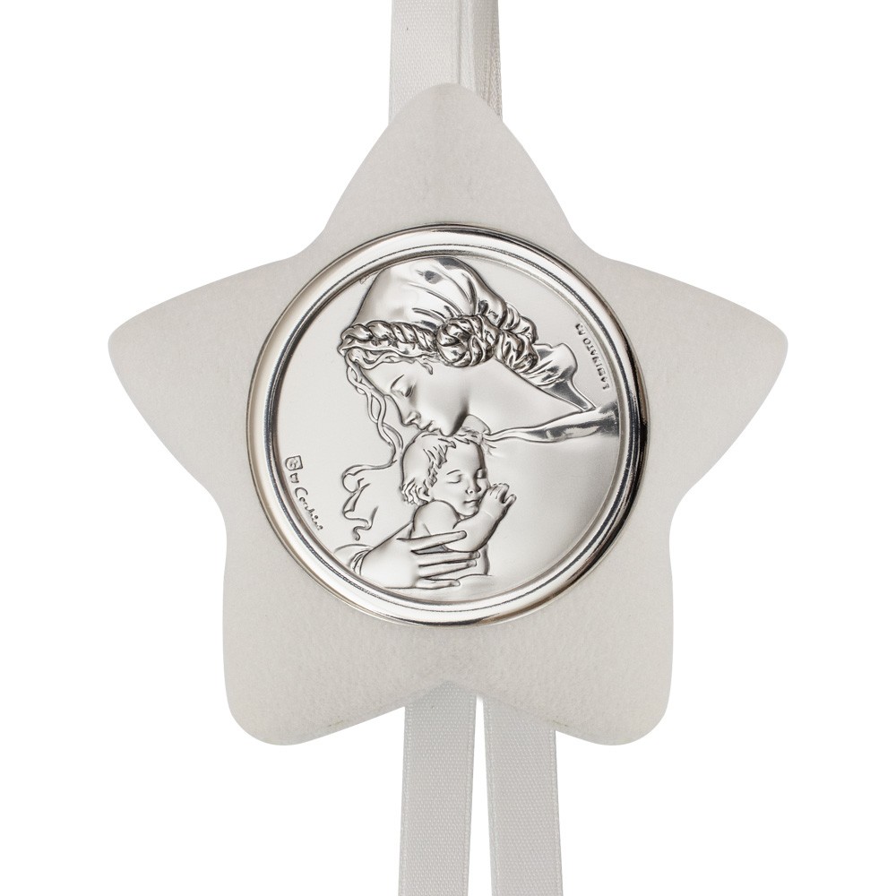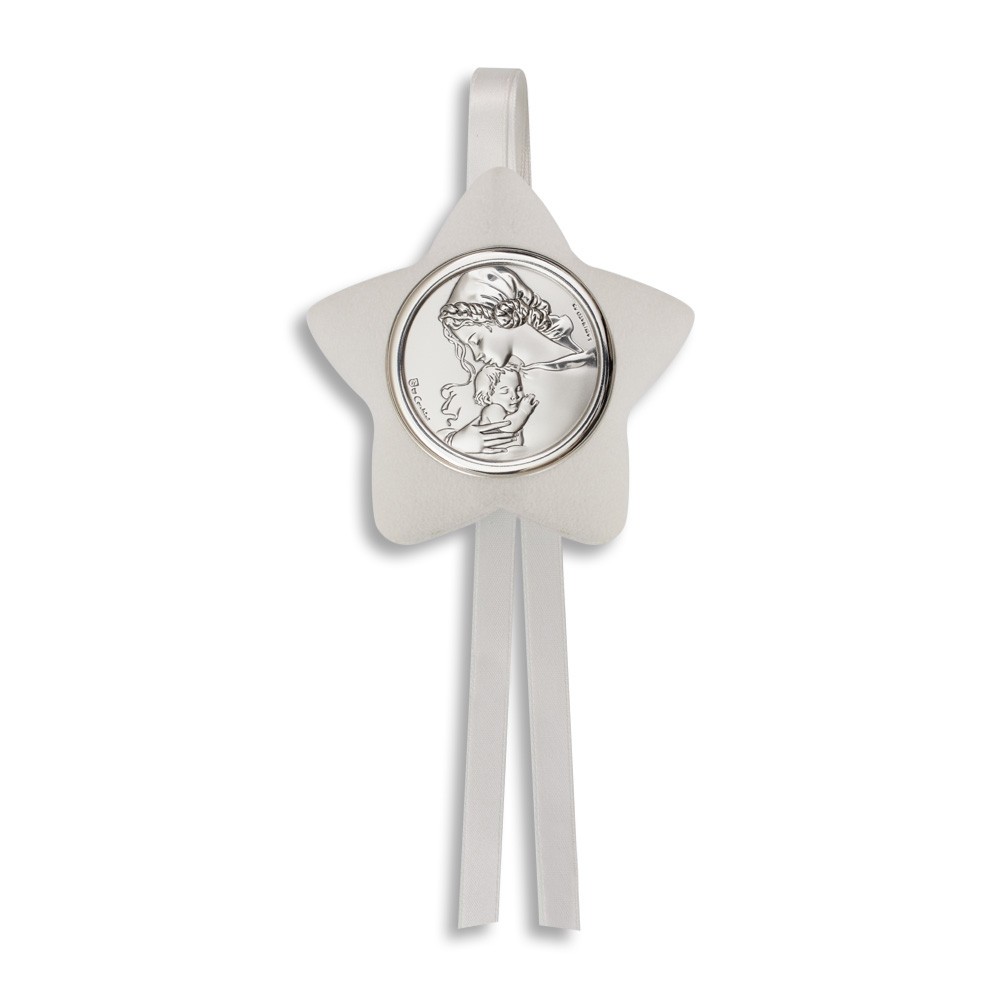 Capoculla stella con nastrino e placca in bilaminato argento.