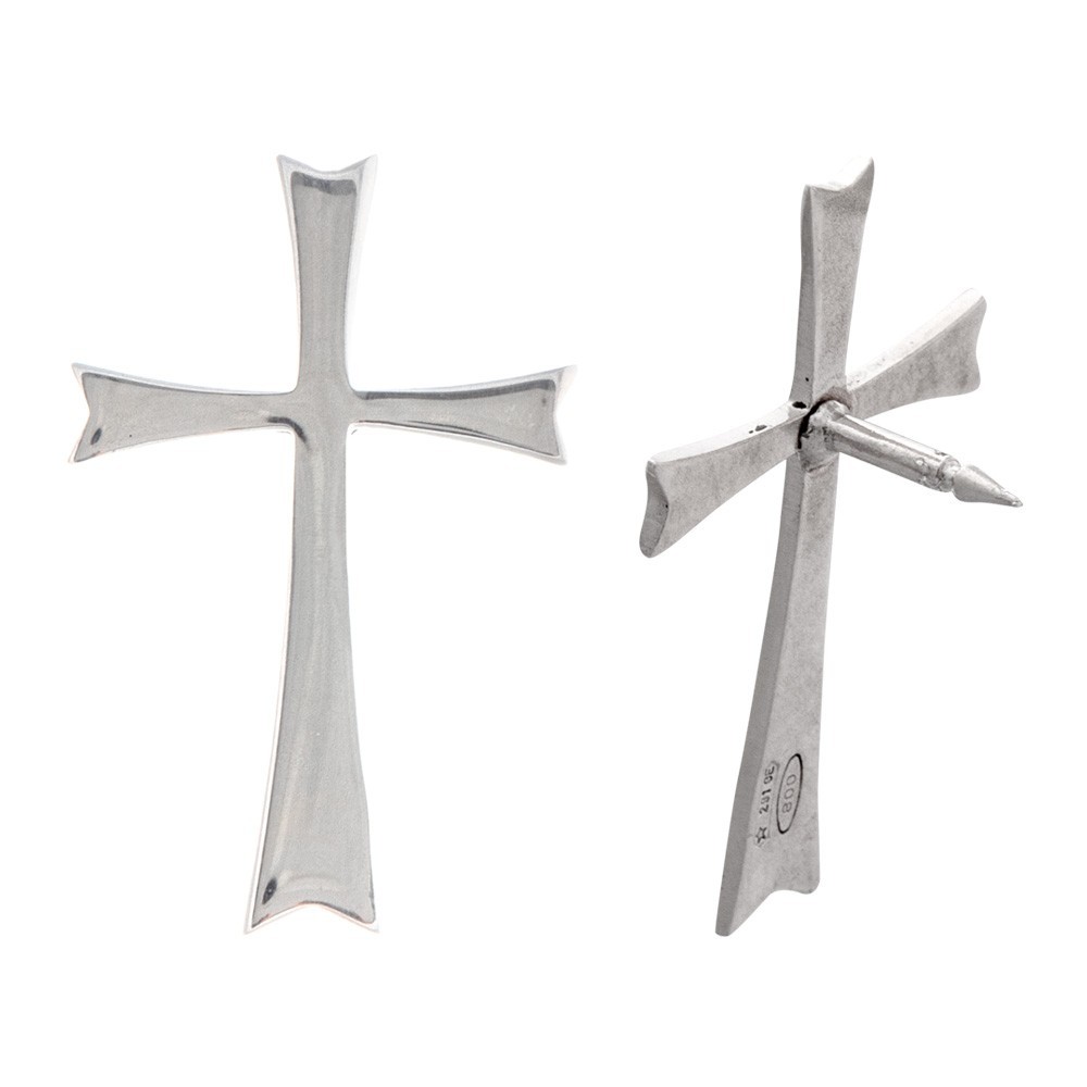Realizzata in argento 925 e completa di spilla da applicare. La croce viene applicata sulle camicie o sulle giacche dei sacerdoti. Articolo made in Italy.