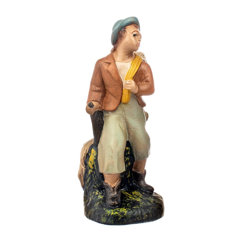 Pastore con cappello e borracccia per il presepe in gesso da 15 cm.