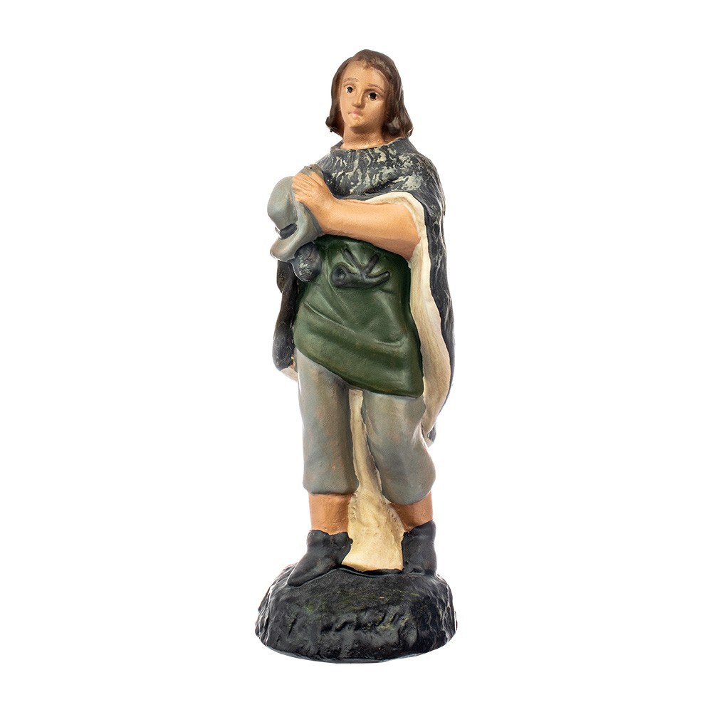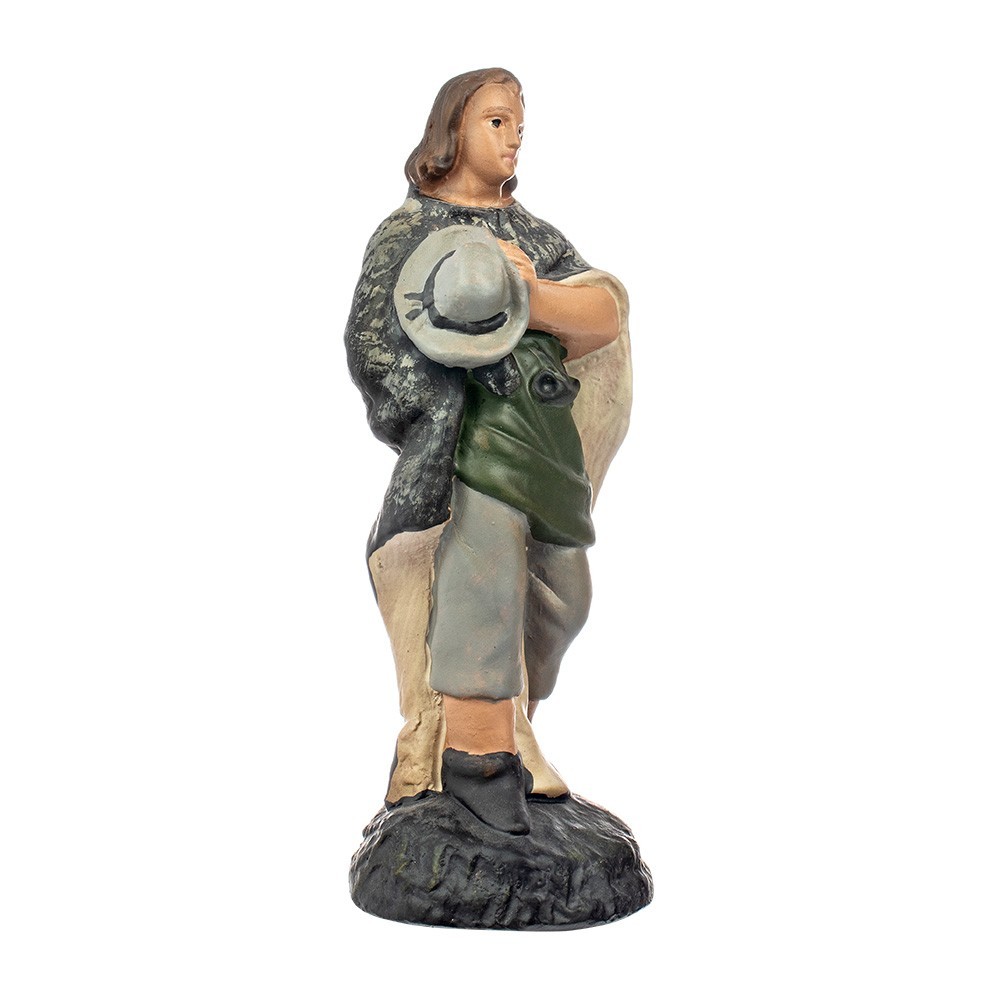 Pastore con cappello e borracccia per il presepe in gesso da 15 cm.