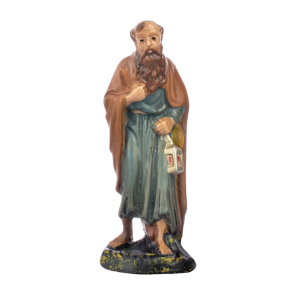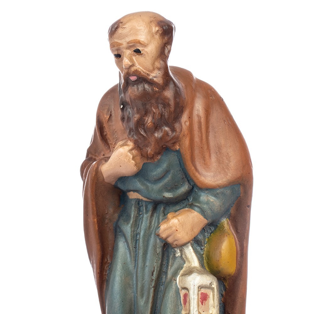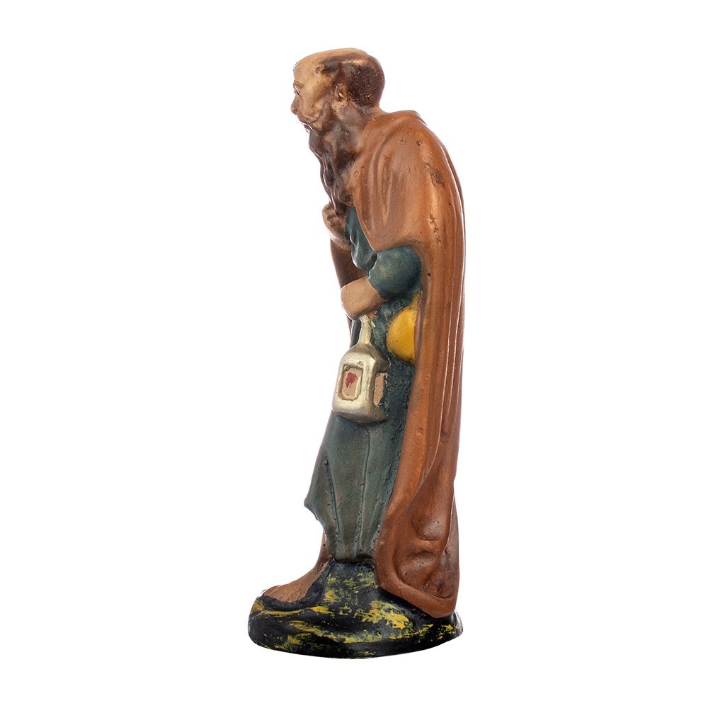 Pastore anziano con lanterna per il presepe in gesso 15 cm. La statuetta è eseguita artigianalmente, dalla colata di gesso, fino alla decorazione a pennello secondo i metodi tramandati da tre generazioni. Realizzata dalla ditta Barsanti, fondata nel 1900 da Carmelo Barsanti che apri un laboratorio di statue di gesso specializzato in arte sacra e presepi.