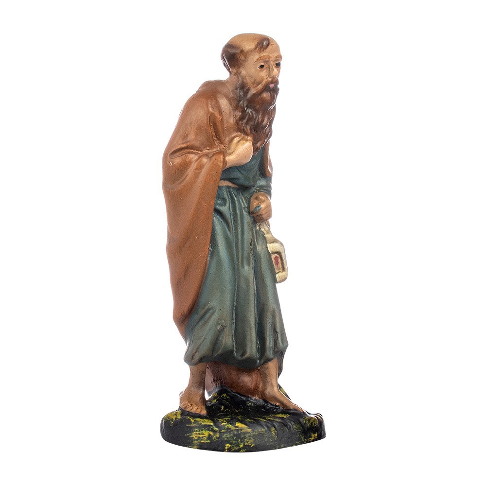 Pastore anziano con brocca e bastone presepe in gesso da 15 cm.