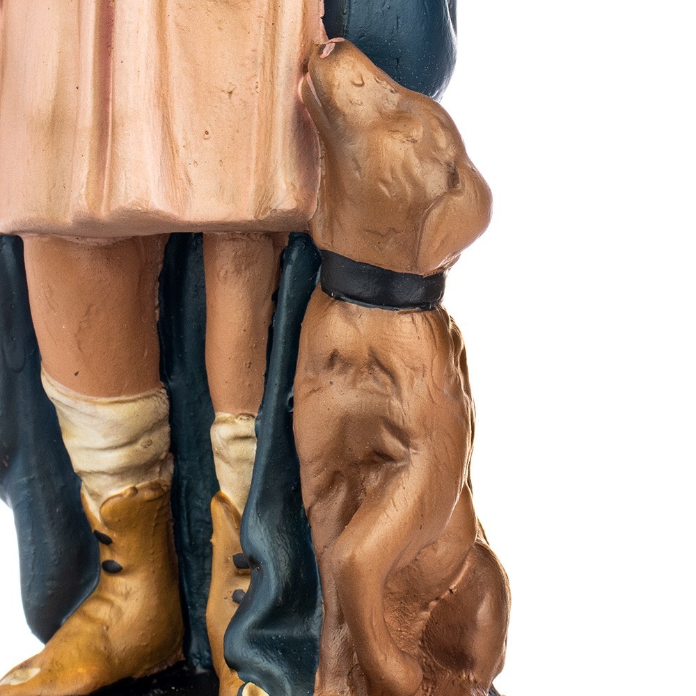 Statue del presepe in gesso 20 cm: Pastore zampognaro con cane. La statua è prodotta e dipinta finemente a mano con colorazione patinata. Prodotto dalla ditta Barsanti, fondata nel 1900 da Carmelo Barsanti che apri un laboratorio di statue di gesso specializzato in arte sacra e presepi.