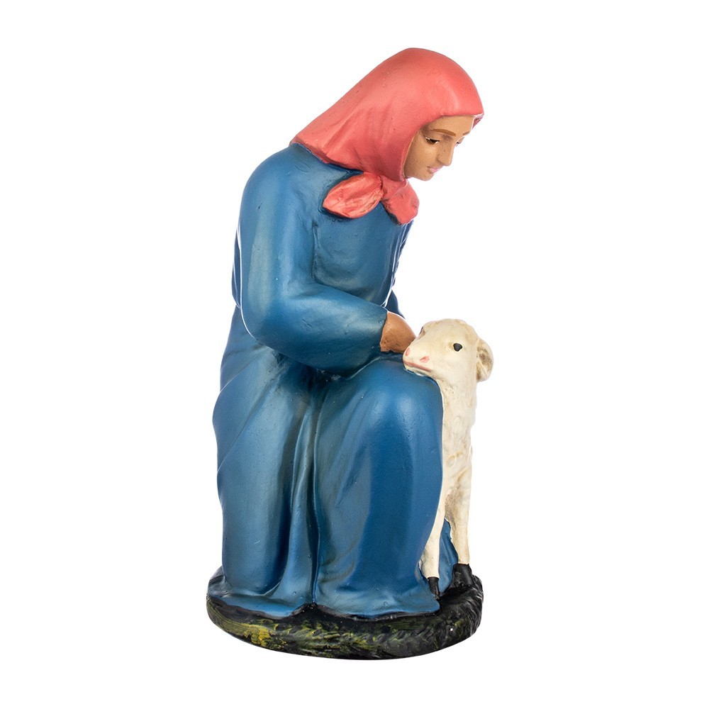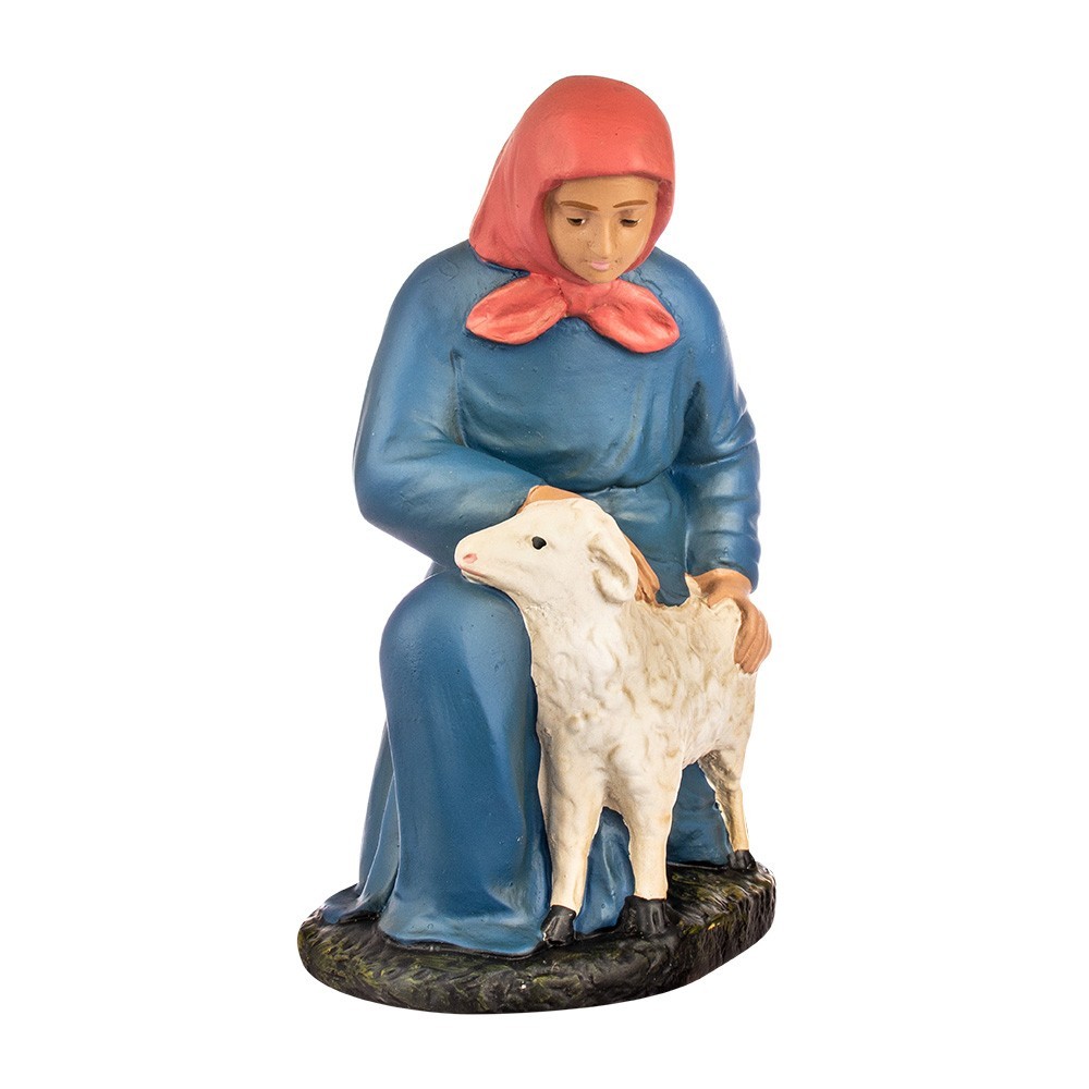 Statua del presepe in gesso: Contadina con pecorella 20 cm.