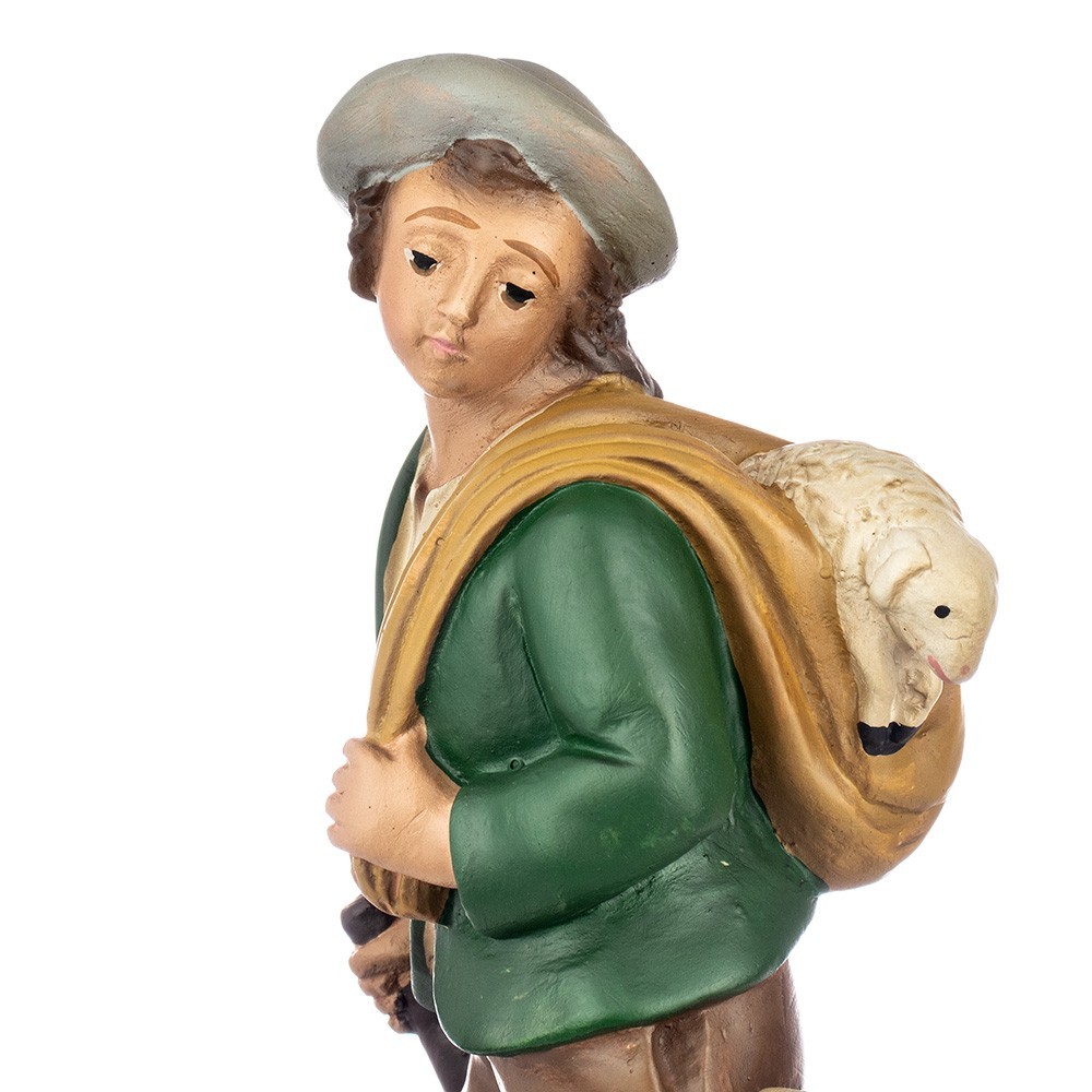 Statua pastore con agnello in spalla 20 cm in gesso.