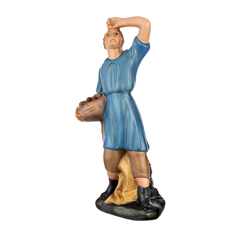 Statua del presepe in gesso: Pastore con cesta 20 cm.