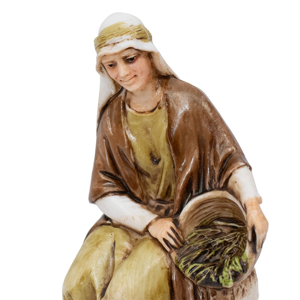 Statua donna seduta su un muretto per il presepe LANDI in stile arabo.