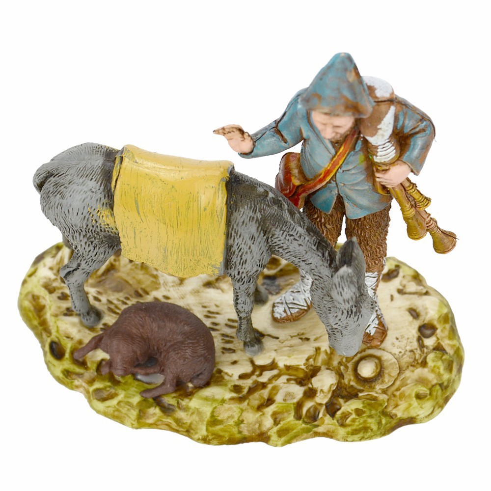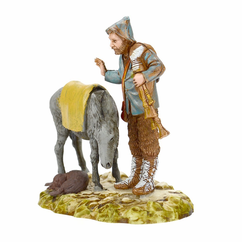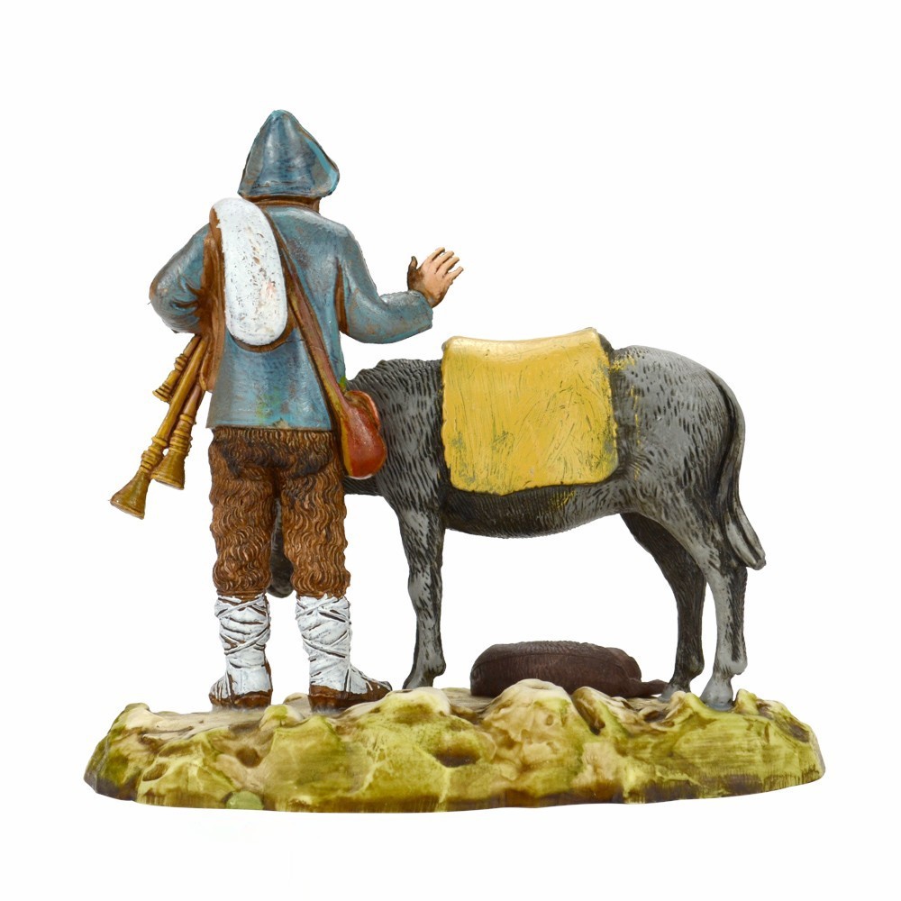 Zampognaro con asinello per presepe Landi serie 10 cm.