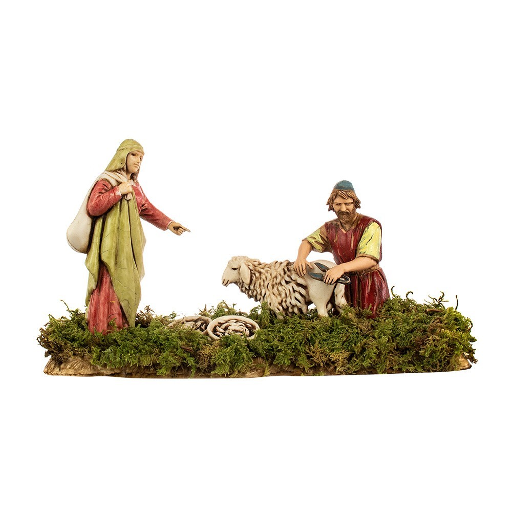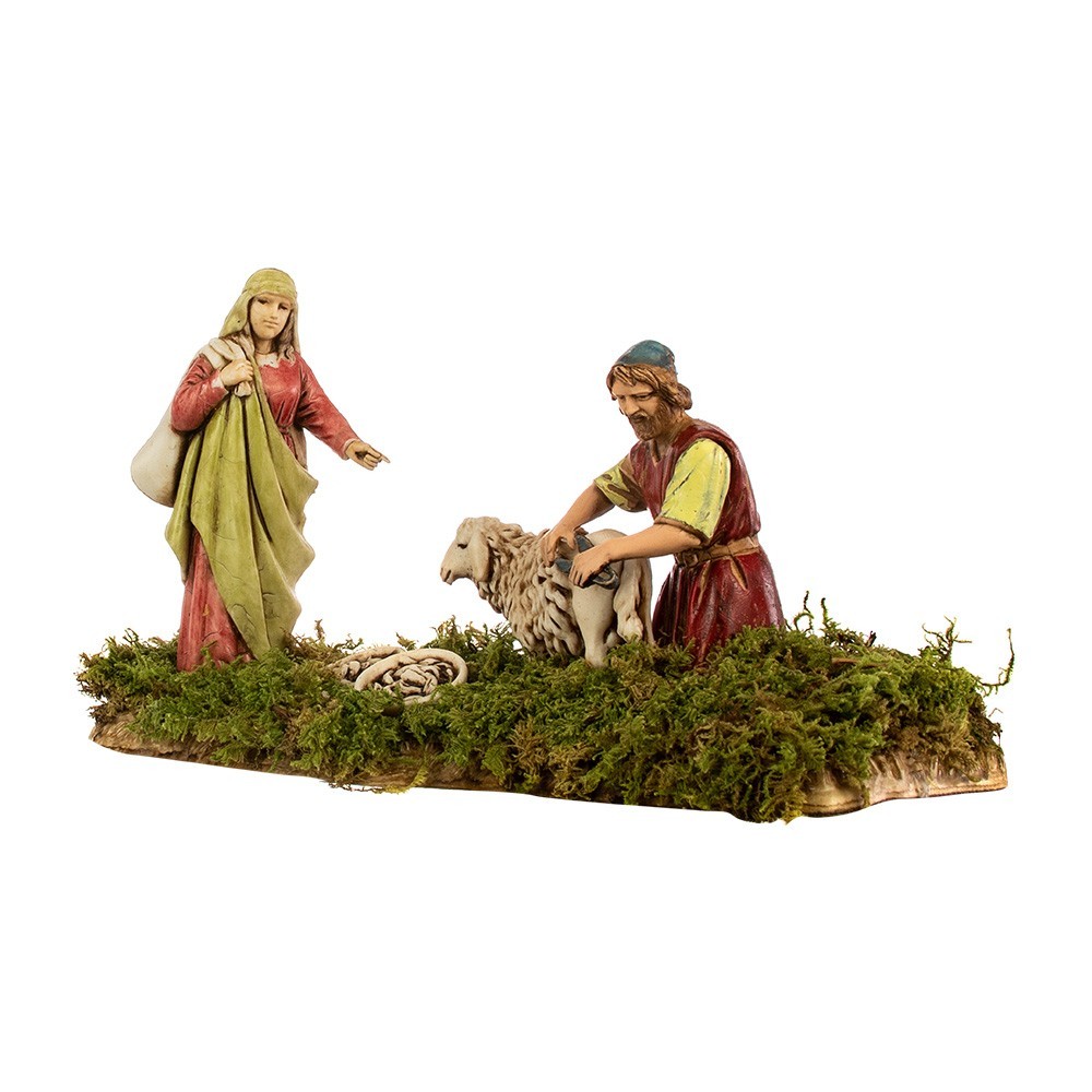 Personaggio Presepe Landi : Tosatore e Donna con Sacco cm 10.