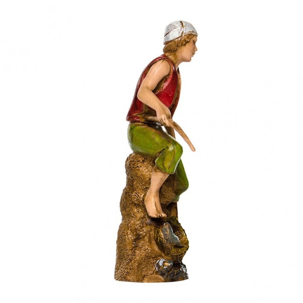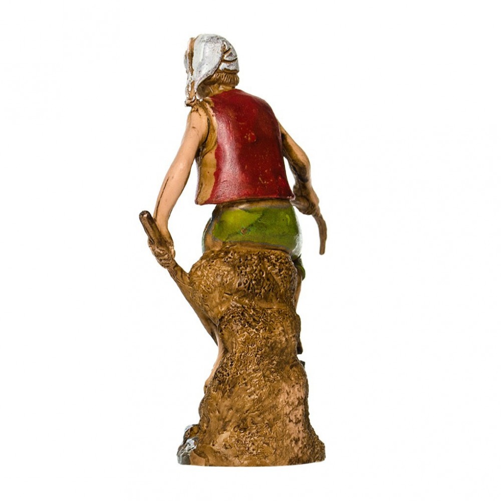 Pescatore Seduto del Presepe Landi 10 cm. Personaggio molto ricercato tra i pastori del presepio, raffigura un uomo seduto su un tronco con una canna da pesca ed un retino in mano.