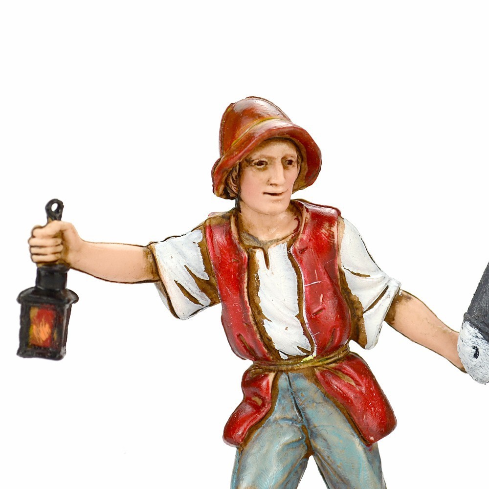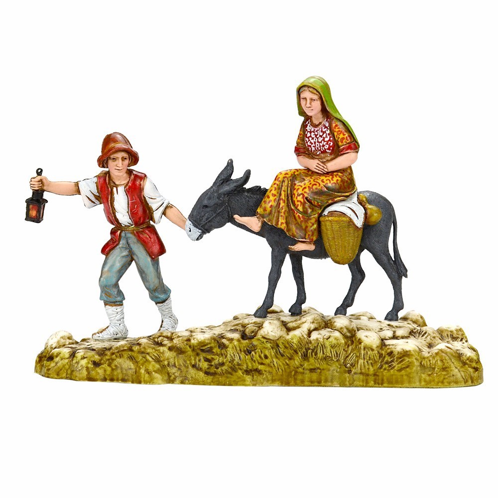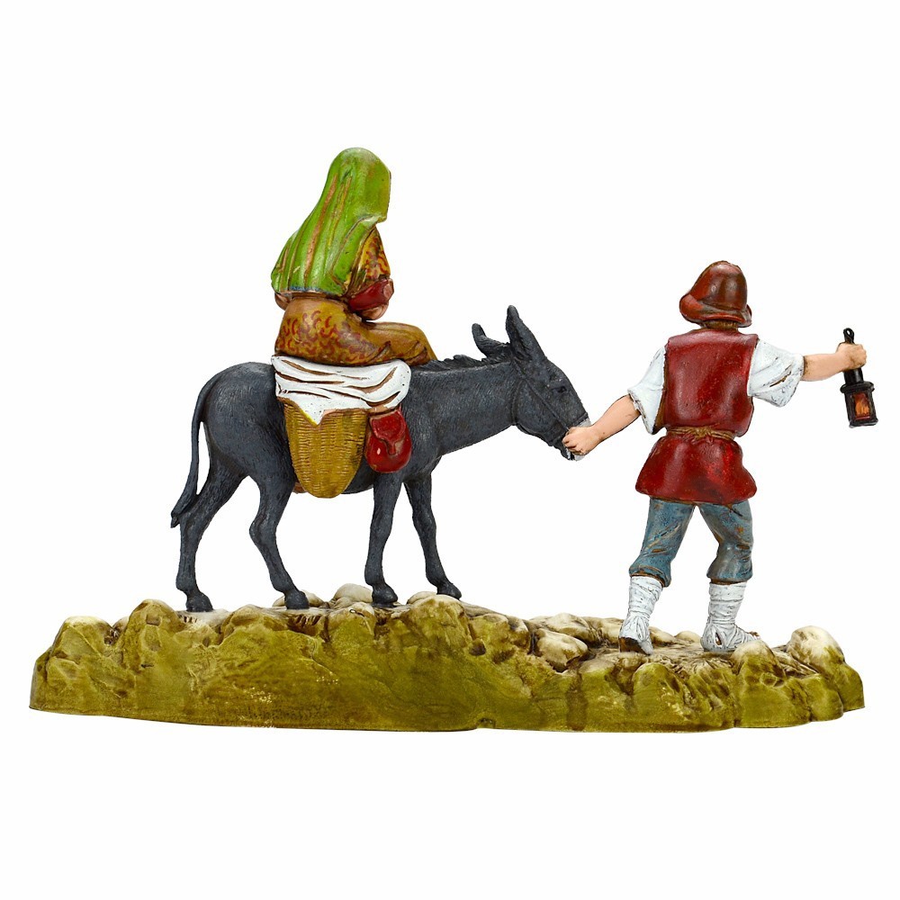 Personaggi del Presepe: Uomo che tira l'asino con donna seduta in groppa.