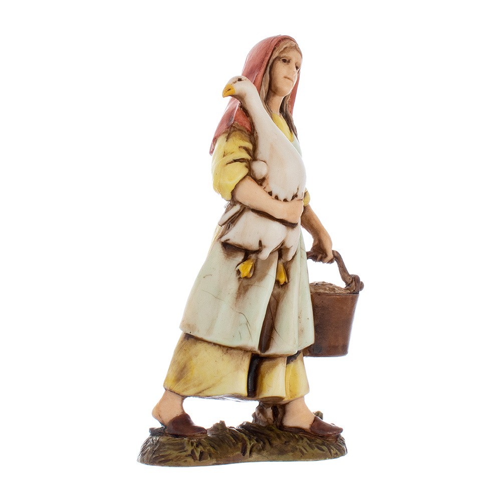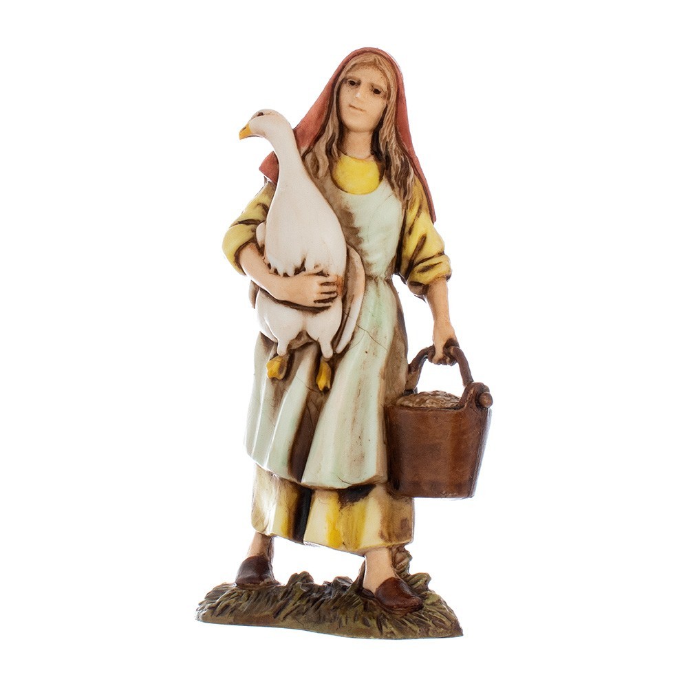 Donna con Oca serie Landi Moranduzzo 10 cm. Rifinita e dipinta interamente a mano.