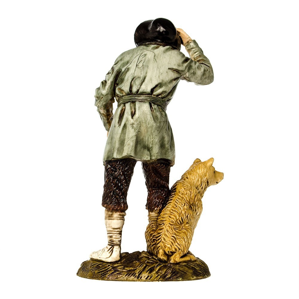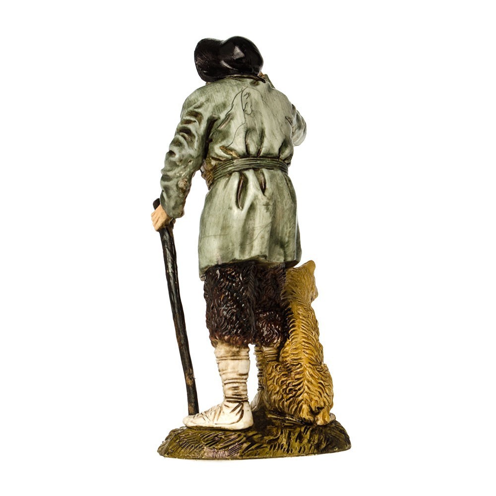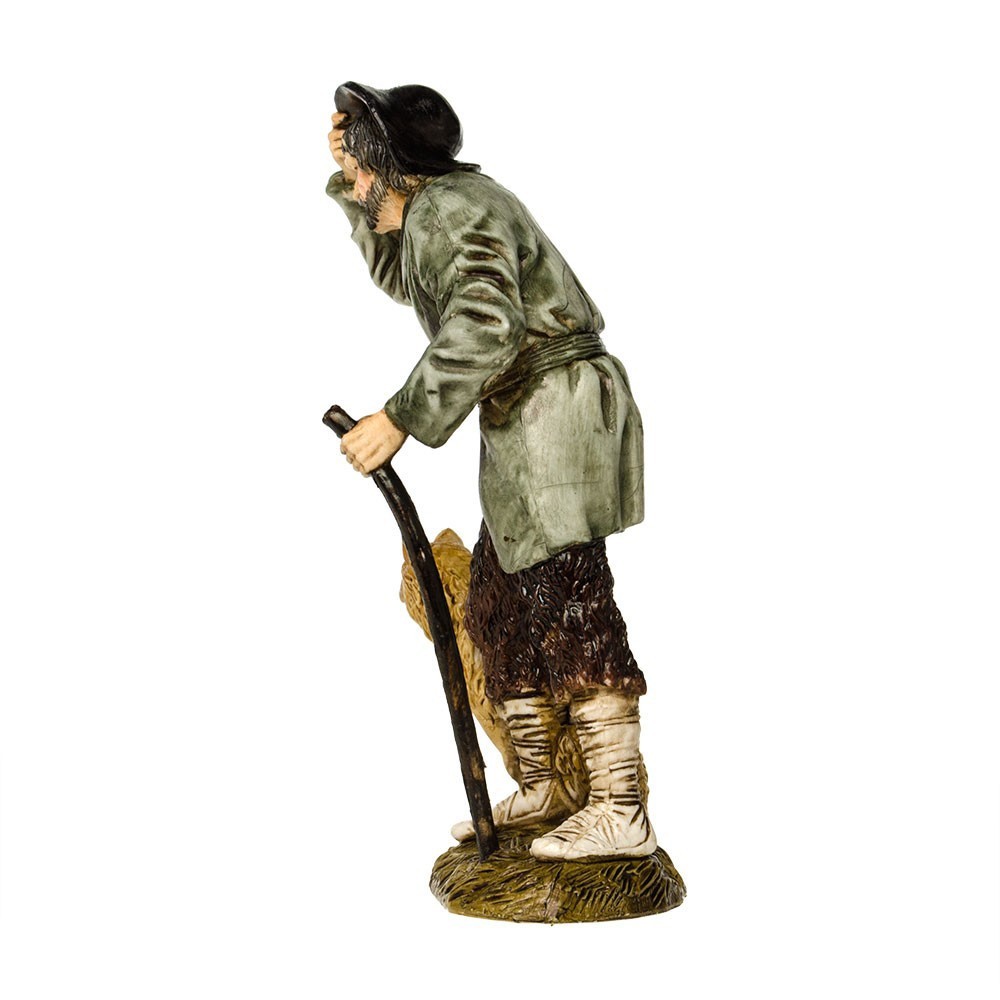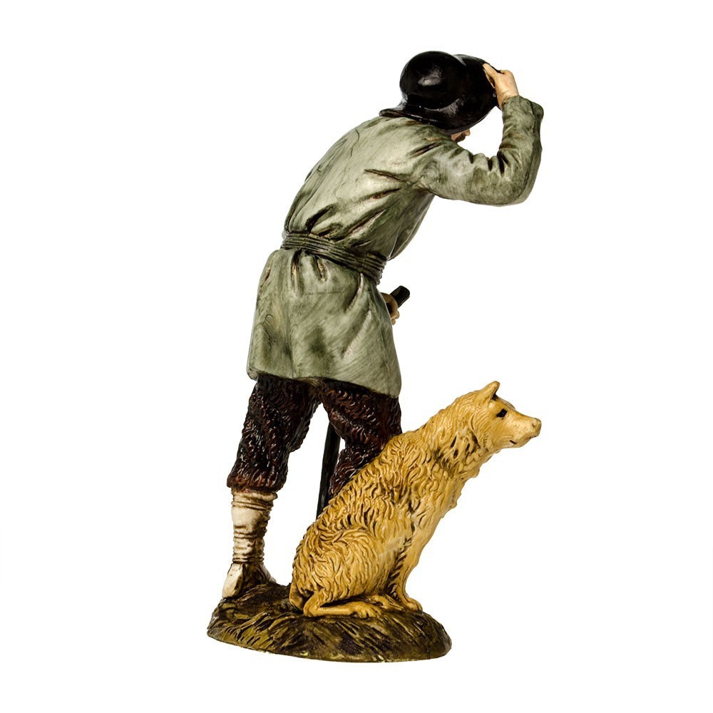 Personaggio Adorante del Presepe Landi 12 cm. Figura classica del presepio, questo pastore fa parte della collezione "Stile Settecento" della Landi. Ritrae un uomo con la barba in piedi ed appoggiato ad un bastone, mentre si toglie il cappello in segno di adorazione. Di fianco a lui un Cane seduto. Prodotto in Italia, marchio di autenticità sotto la base. Materiale utilizzato: PVC dipinto e rifinito a mano.