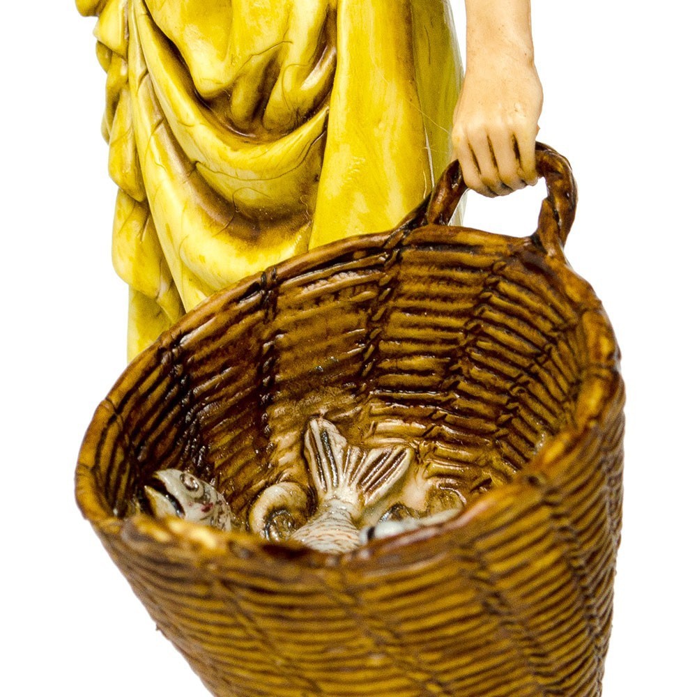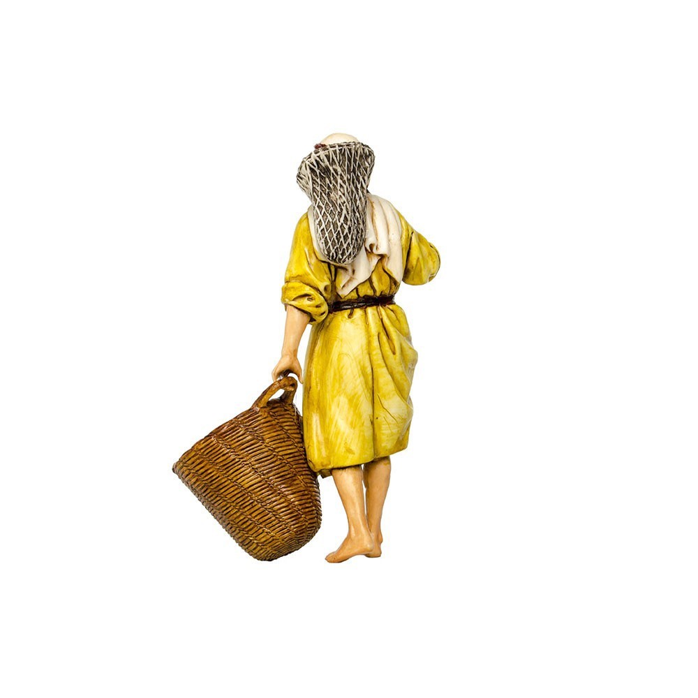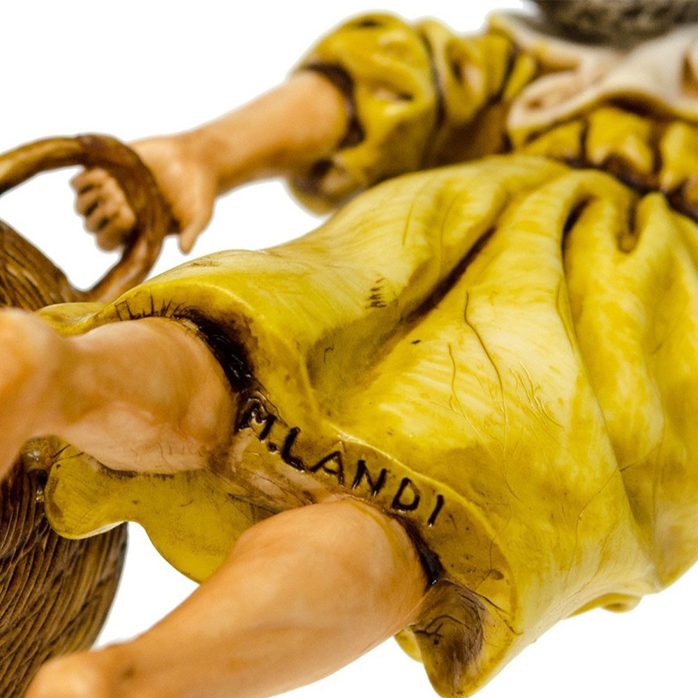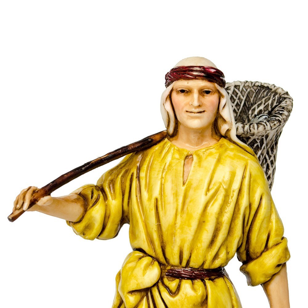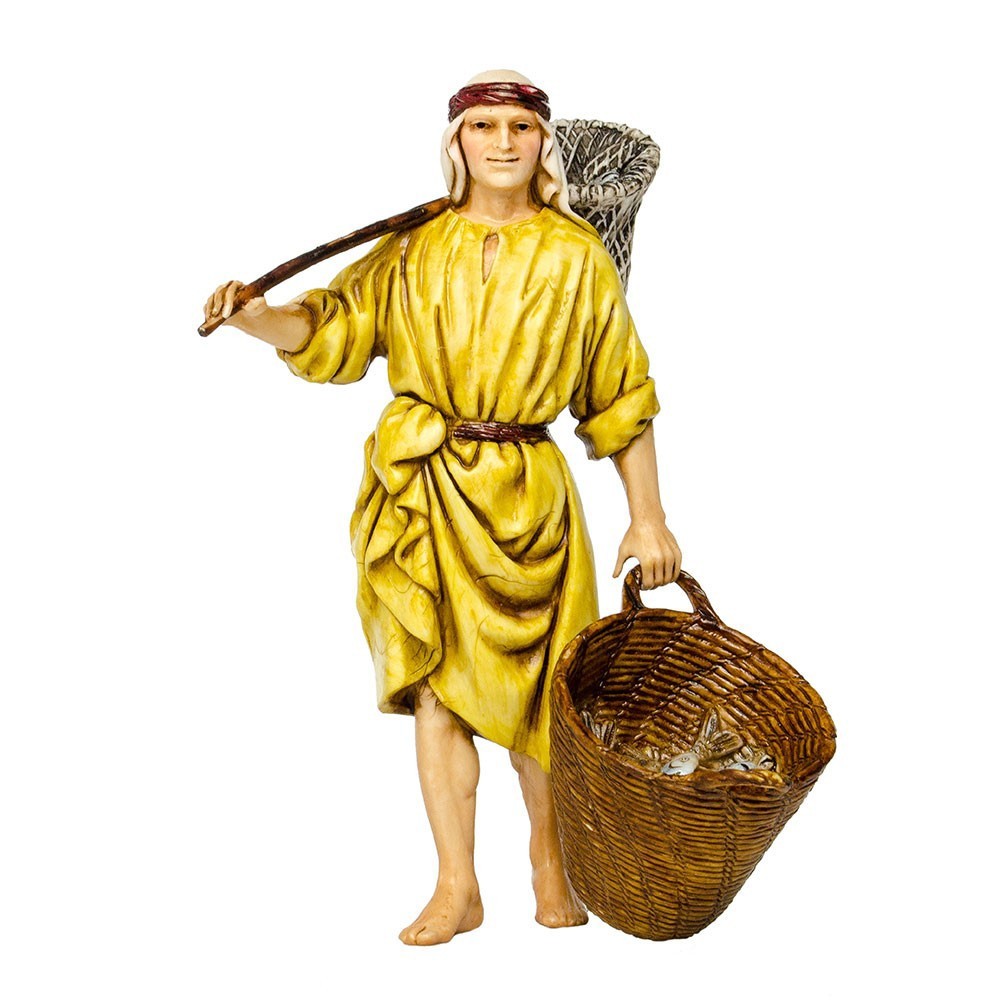 Pescatore del Presepe Landi 13 cm. Questo personaggio del presepio raffigura un uomo arabo con un cesto di pesci e il retino in spalla. Questi pastori della Landi sono senza la base, per facilitare la collocazione all'interno delle scenografie del presepe.