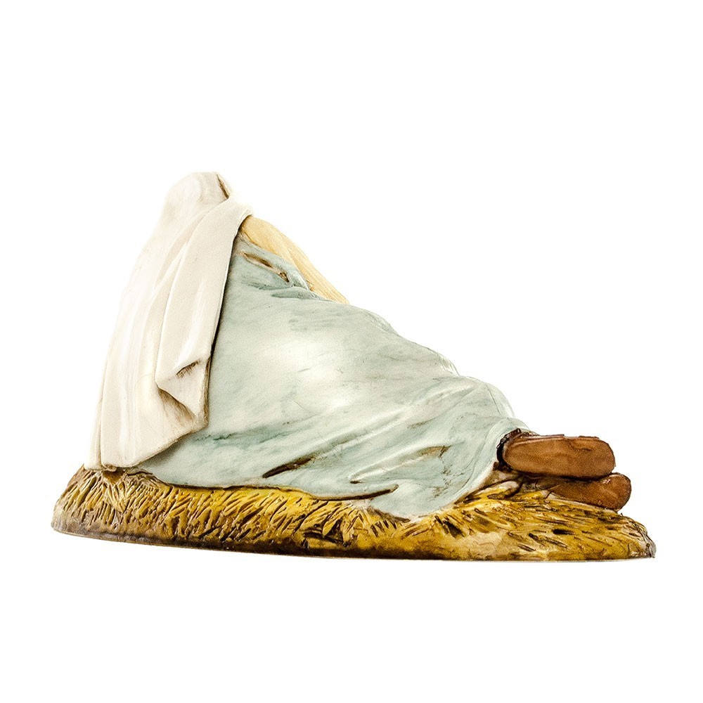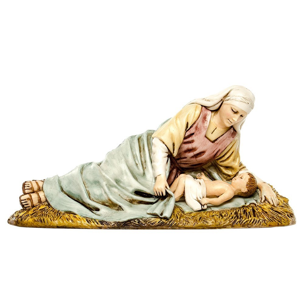 Madonna Sdraiata con Bambino per il Presepe Landi 13 cm. Personaggio molto particolare che raffigura la Madonna sdraiata assieme a Gesù Bambino. La statua del Bambinello è amovibile.