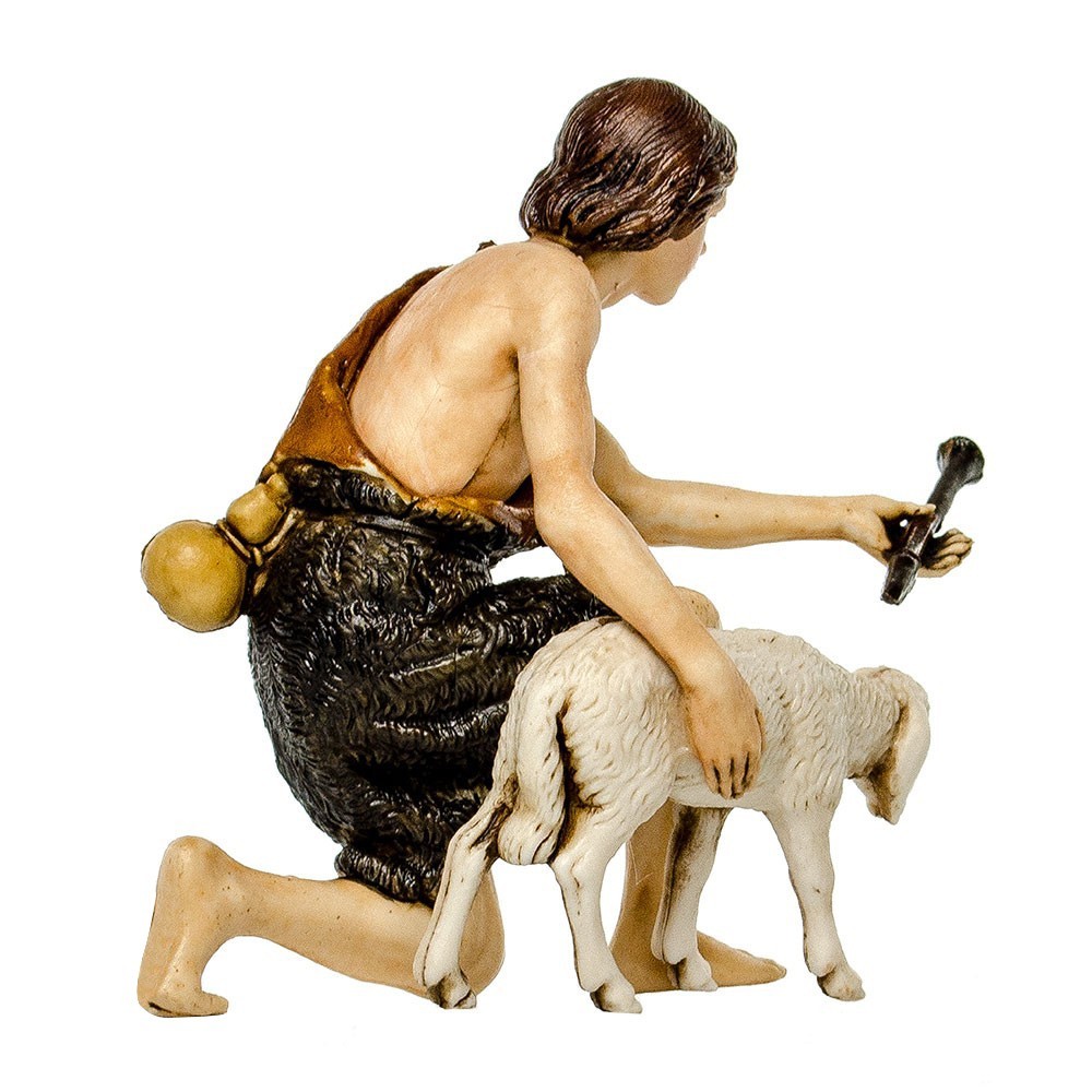 Pastore in Ginocchio per il Presepe Landi 13 cm. Personaggio della categoria degli adoranti, semplice da collocare nel presepio perchè senza base. Raffigura un uomo in ginocchio di fianco ad una pecora e con un flauto in mano.