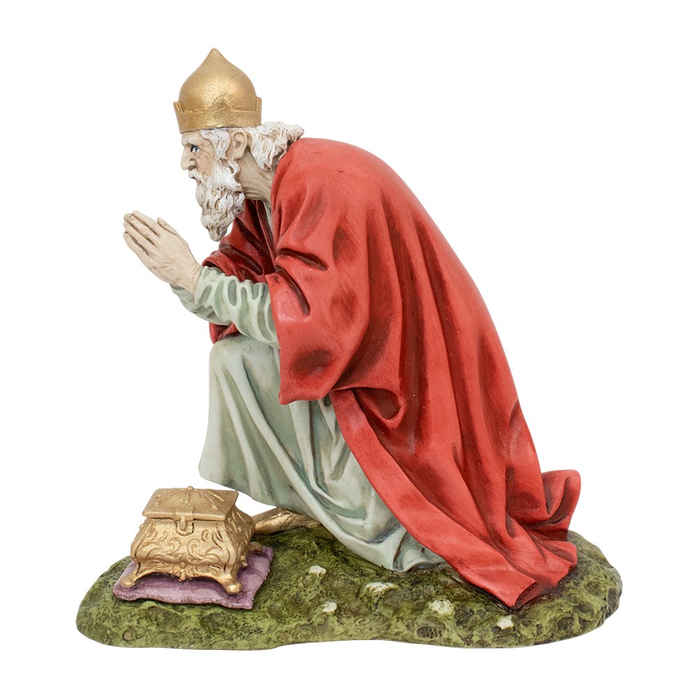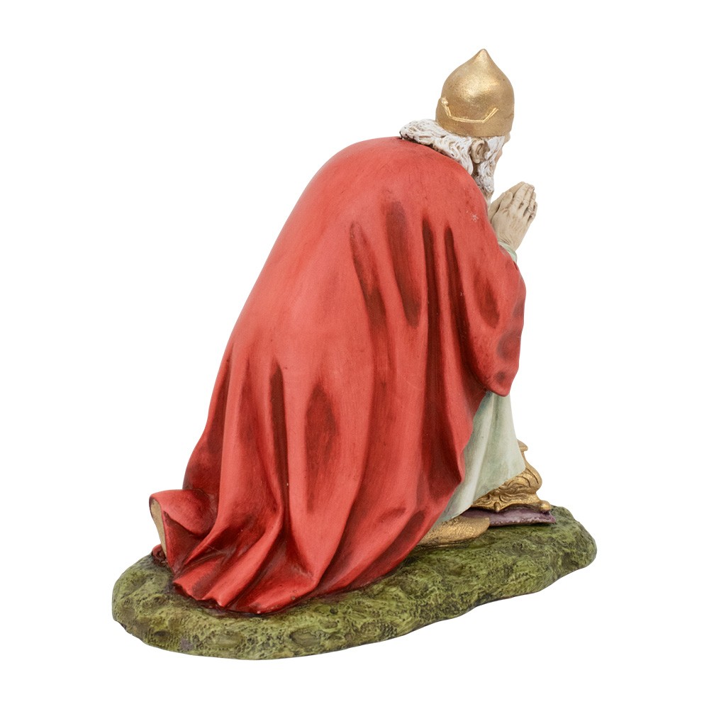 Elegante statua del Re Saraceno in resina dipinta a mano, proporzionata per il presepe con altezza 18 cm.