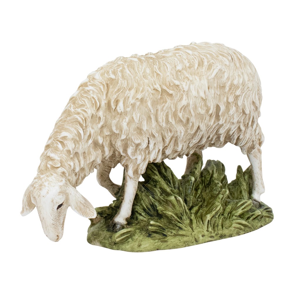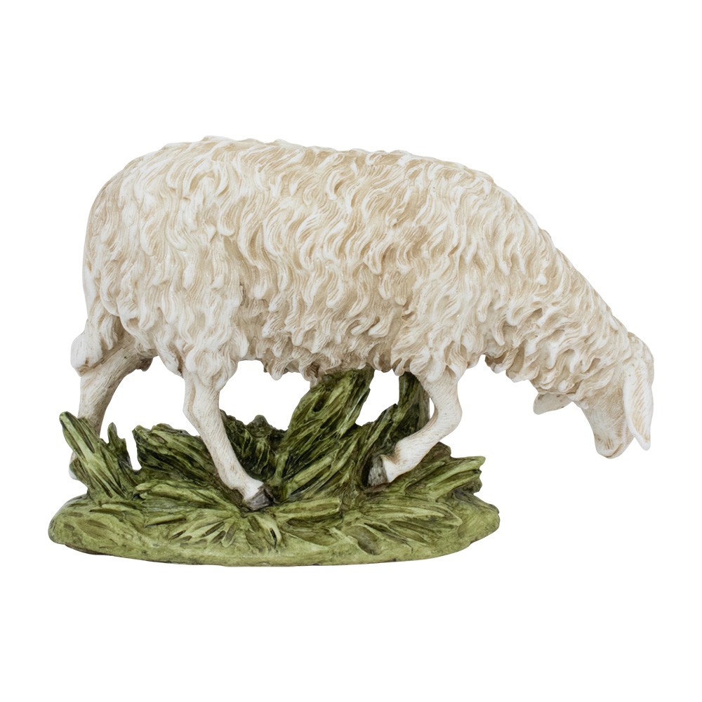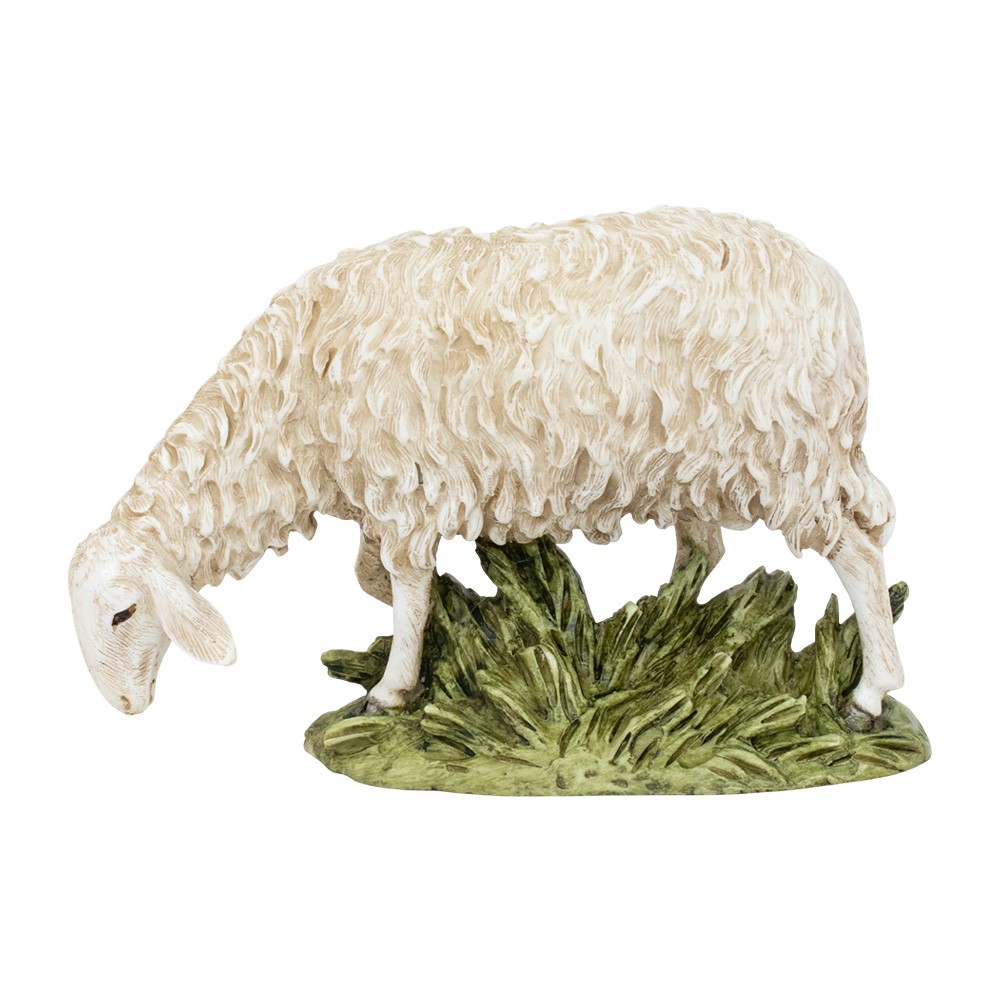 Pecora in piedi con base proporzionata per il presepe con altezza massima 18 cm.