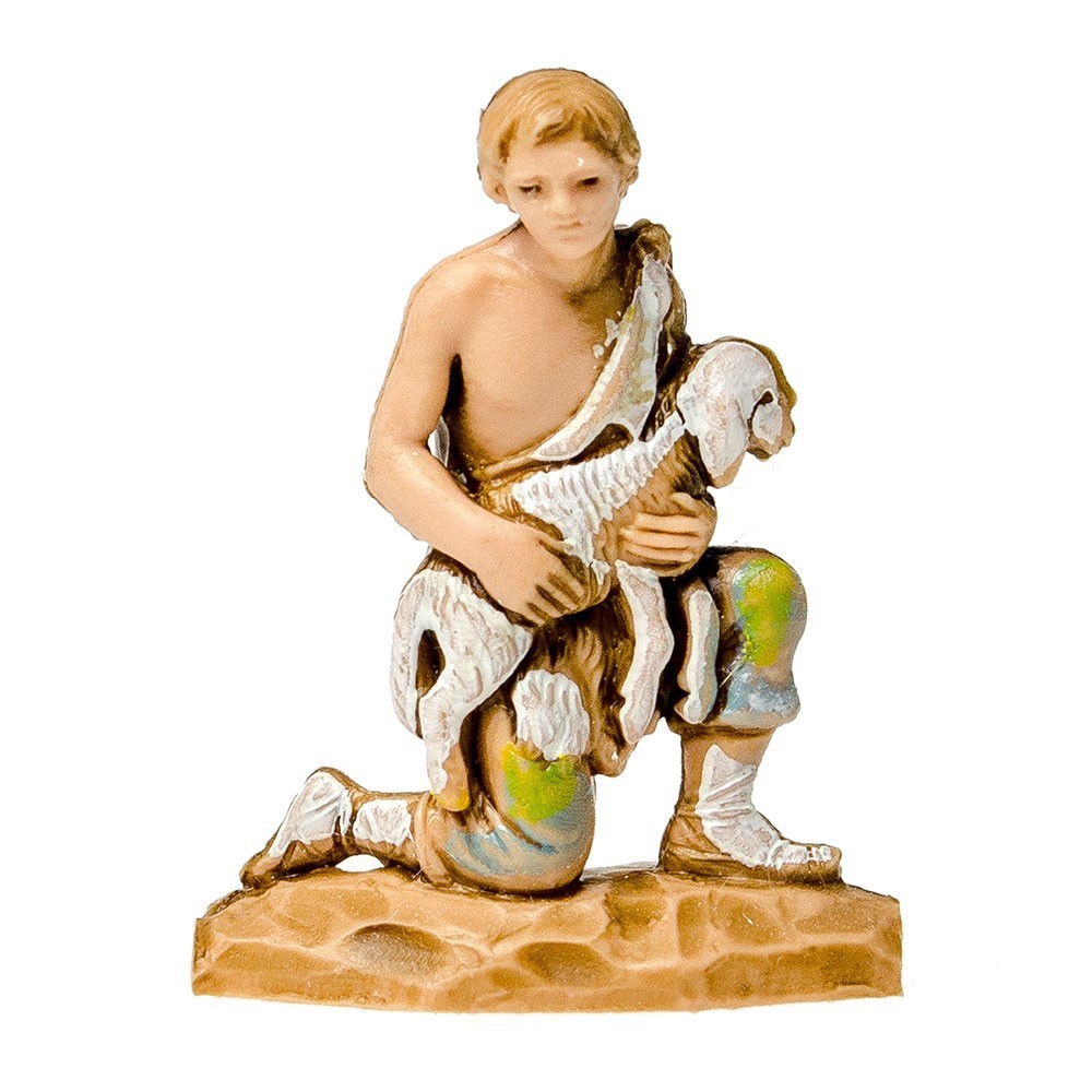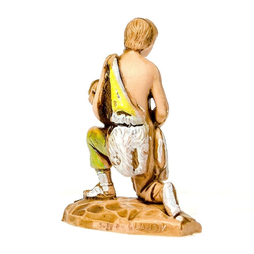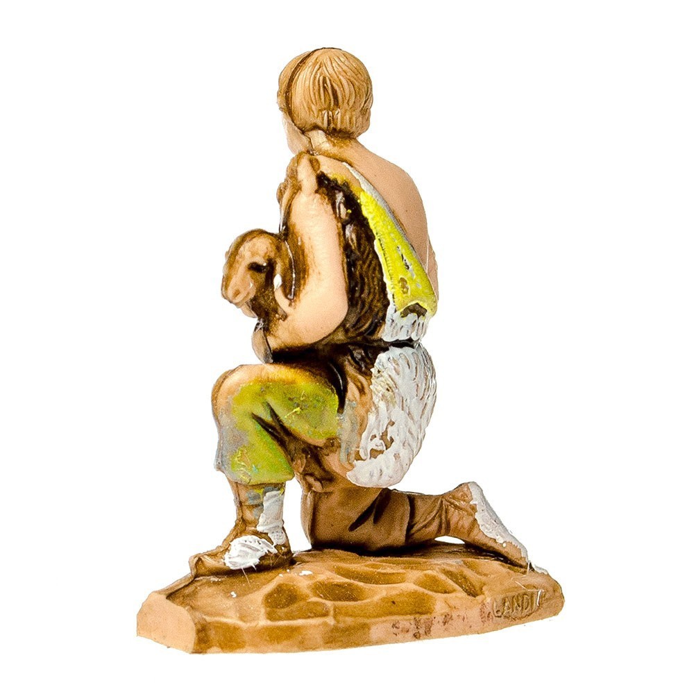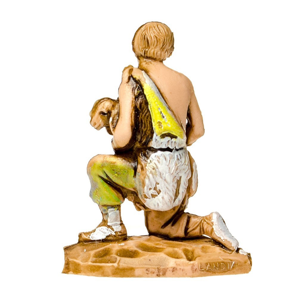 Statuina del Presepe Landi 3,5 cm: Pastore in ginocchio con Agnello in Braccio.