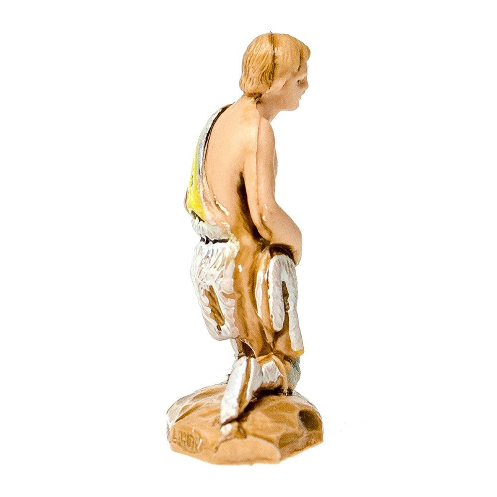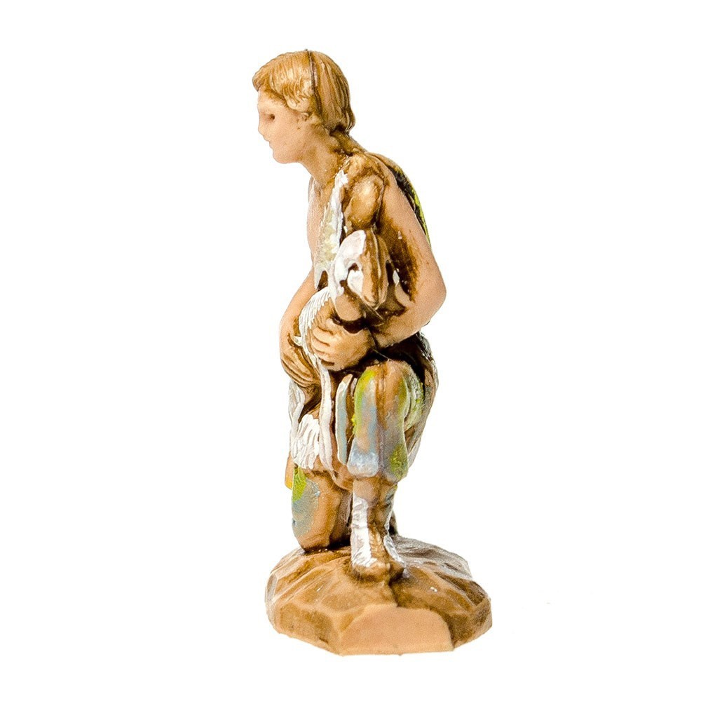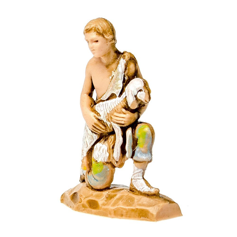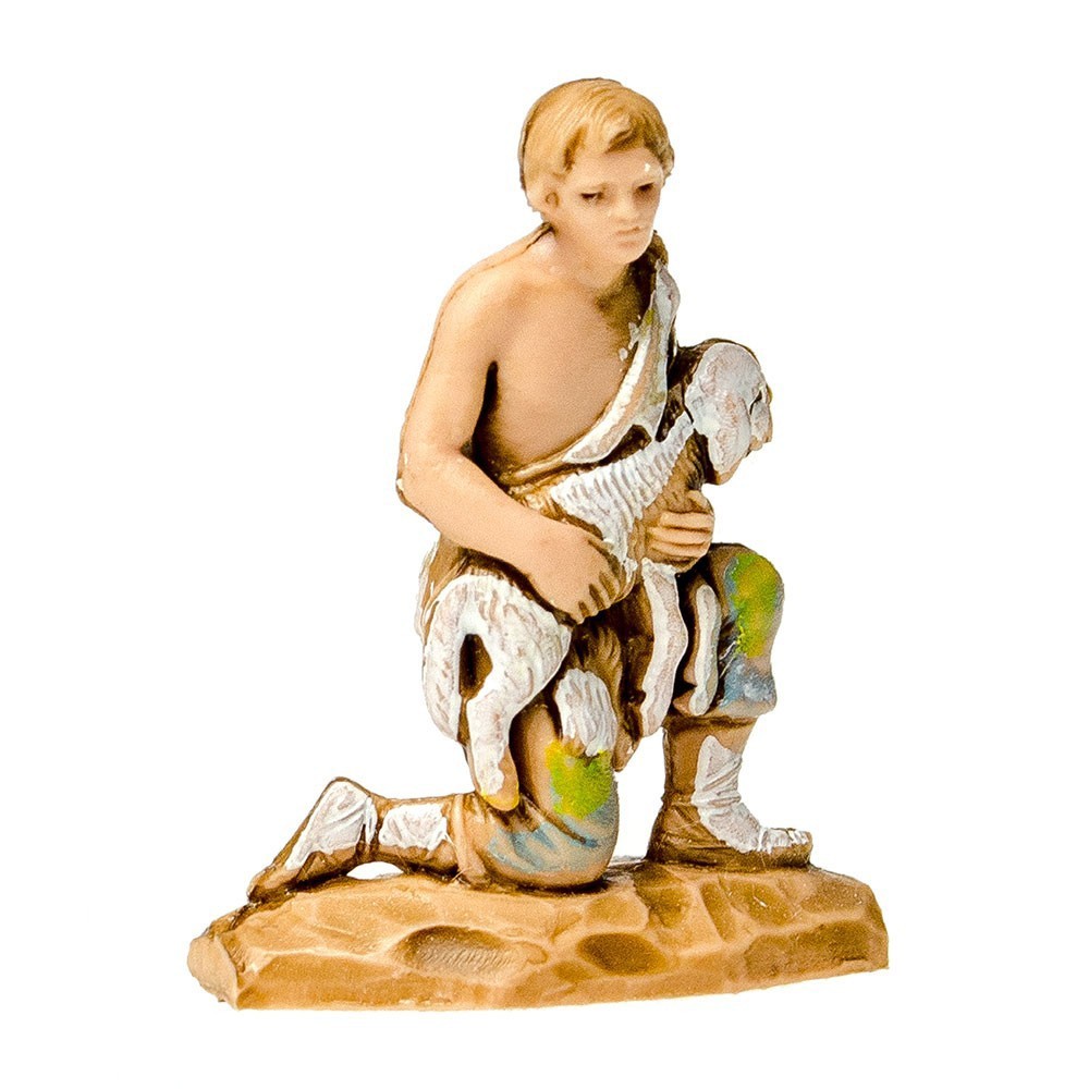 Statuina del Presepe Landi 3,5 cm: Pastore in ginocchio con Agnello in Braccio.