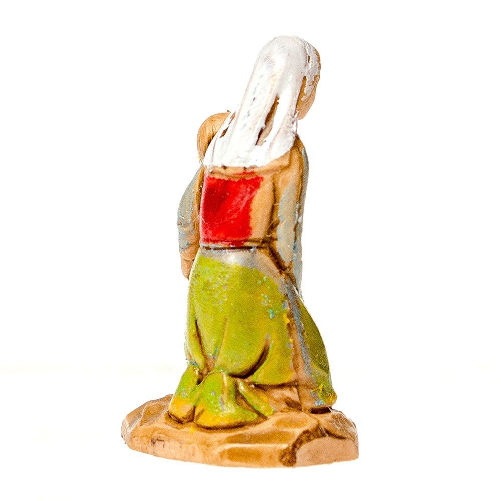 Statuina del Presepe Landi 3,5 cm: Donna in ginocchio con cesto di uova e Bambina.