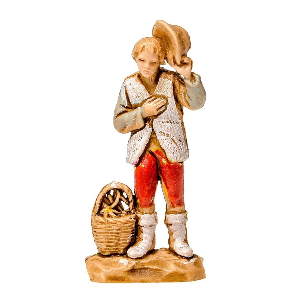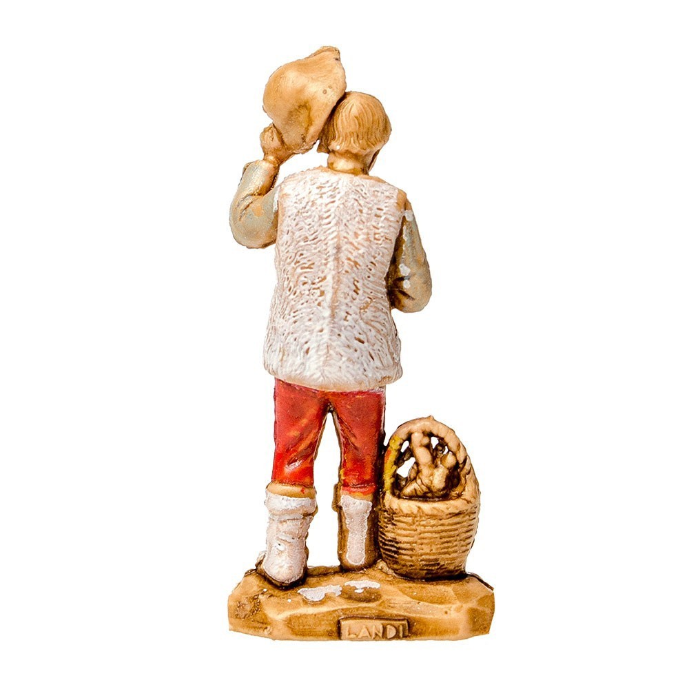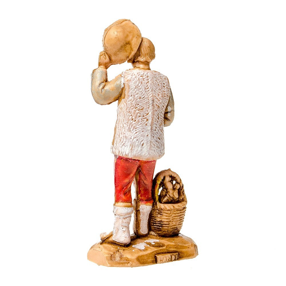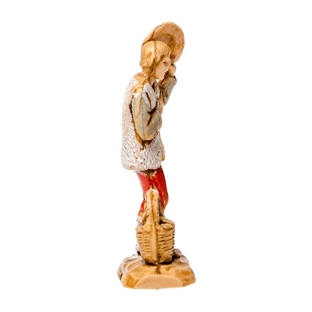 Statuina del Presepe Landi 3,5 cm: Pastore con Cesto e Cappello in Mano.