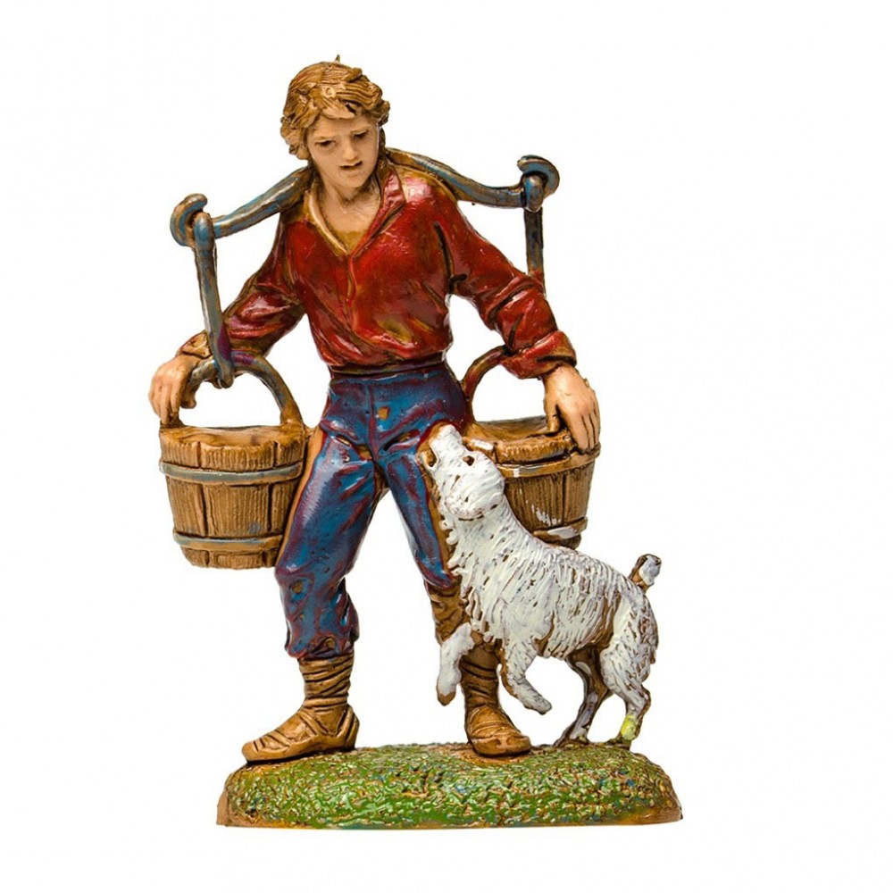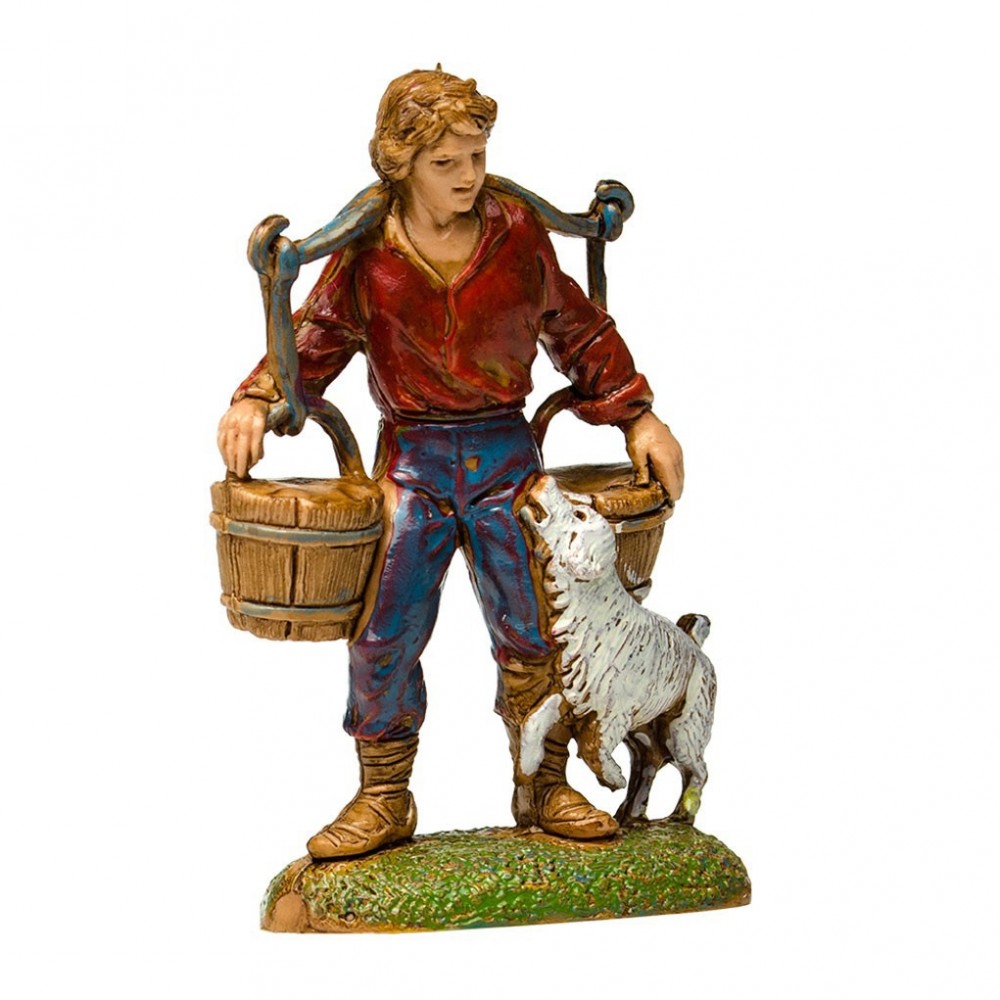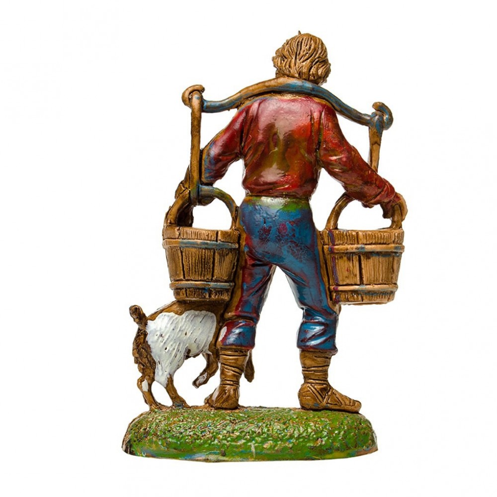 Statuina dell'Acquaiolo con Secchi per il presepe Moranduzzo 6 cm. Raffigura un pastore che porta in spalla due secchi d'acqua.